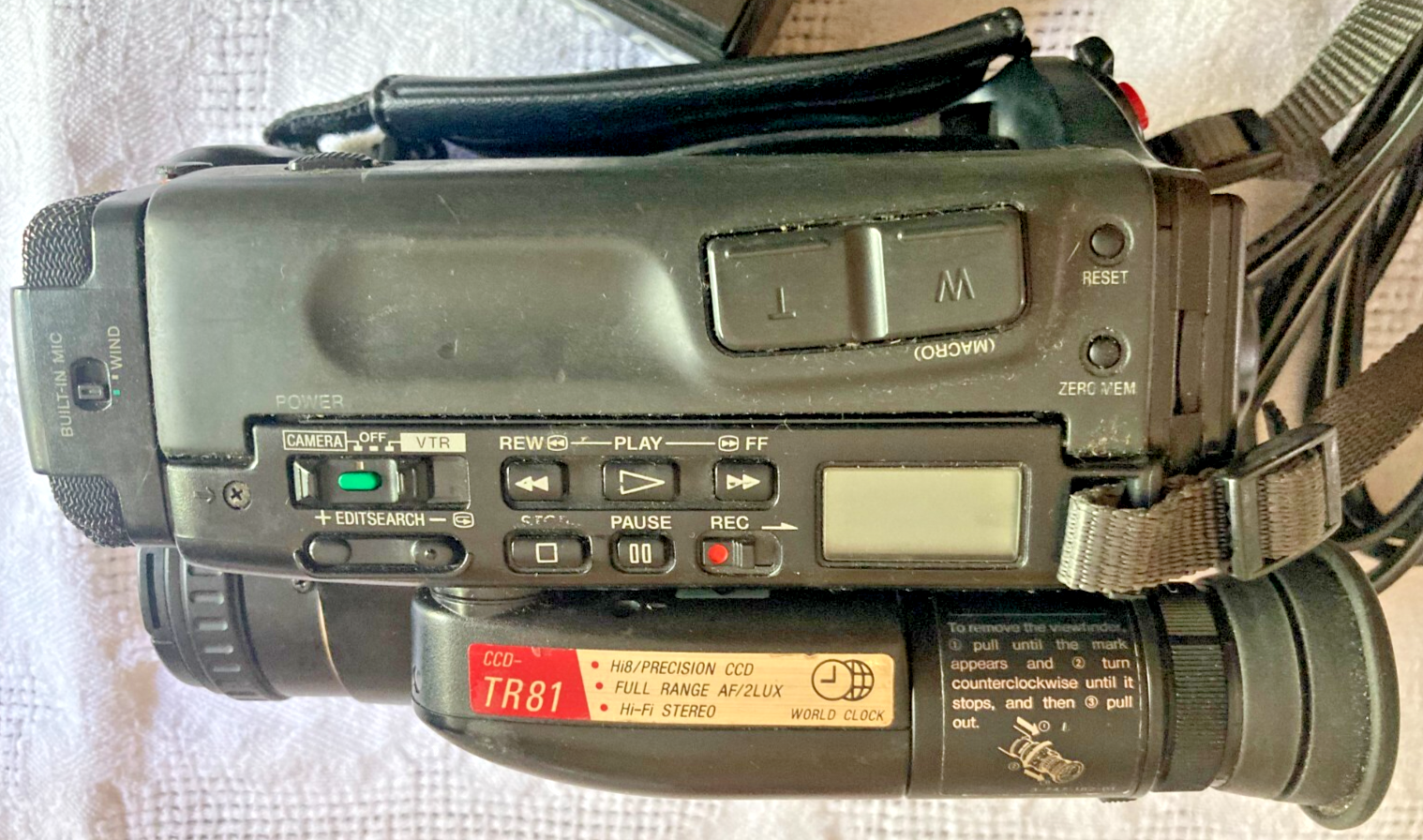 Sony CCD-TR81 Camcorder Video Hi8 Handycam Parts or Repair with Charger Charger lights up and camera goes on but don't know if it works Very Good Condition Being sold as is