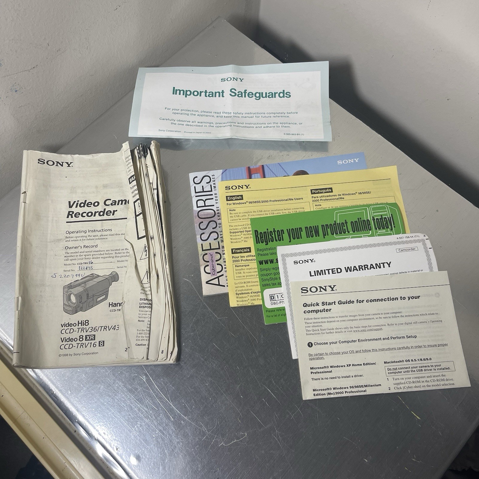 Sony CCD-TRV16 Video8 Camcorder HandyCam Vision 180X Zoom Bundle - TESTED Bundle Includes: Manual Various Extra Documents/Manuals/Pamphlets Image Mixer CD + Sony Handycam CD Original Battery + Replacement Battery Charger Original Remote Control Brand new MiniDV Tape Ambico V-0410 Camera Carrying Case Tested + Working - Feel free to ask for any additional photos/questions