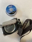 We didn’t get the ac adapter so this unit is untested and sold as is the unit looks clean also included 3 small disc in the case nothing else Sony Camcorder DCR DVD103 Handycam DVD Video Camera Recorder Untested. Condition is "For parts or not working". Shipped with USPS Priority Mail.