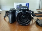 The Sony Cyber-shot DSC-HX1 digital camera is packed with features that make it perfect for capturing stunning photos and videos. Camera is in like-new, mint condition. It works perfectly and has no scratches or marks on it. It was tested prior to listing. Features: 20X optical zoom 9.1 megapixel Exmor CMOS image sensor 11 MB built-in memory 10 frames per second burst mode 1080p video recording intelligent auto focus noise reduction image stabilization built in flash delay timer multiple shooting modes multiple scene selection modes 3.0" LCD display with 90 degree tilt for viewing and editing captures images to Memory stick DUO (sold separately) Includes : Sony Cyber-Shot DSC-HX1 digital camera original box camera shoulder strap lens cap battery charger rechargeable battery pack CD-ROM user instruction manual camera cleaning kit HDMI adapter neoprene camera bag ***memory stick and AV cable are NOT included*** From a smoke & pet free home.
