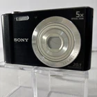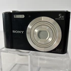 Sony Cyber-Shot DSC-W800 20.1 MP 5x Optical Zoom Digital Camera-Cord, Card, Case These preowned cameras are in very good condition. They show slight wear from age and use, with light scuffs around silver lens ring. The LCD screens are virtually scratch-free. When tested, the cameras work well. Each Bundle Includes: Camera, Battery, USB Charging/Data Cord, 16GB SD Card, Case. 6 Cameras Available. The Sony Cyber-Shot DSC-W800 is a compact digital camera with a sleek black design. It features a 20.1 MP maximum resolution, 5x optical zoom, and 10x digital zoom for capturing high-quality images. The 2.7-inch screen size makes it easy to view and navigate through your photos. With built-in image stabilization, USB connectivity, and a lithium-ion battery, this camera is a convenient and reliable option for photography enthusiasts. Additionally, it comes with a cord, card, and case included, making it a complete package for capturing and storing your memorable moments.