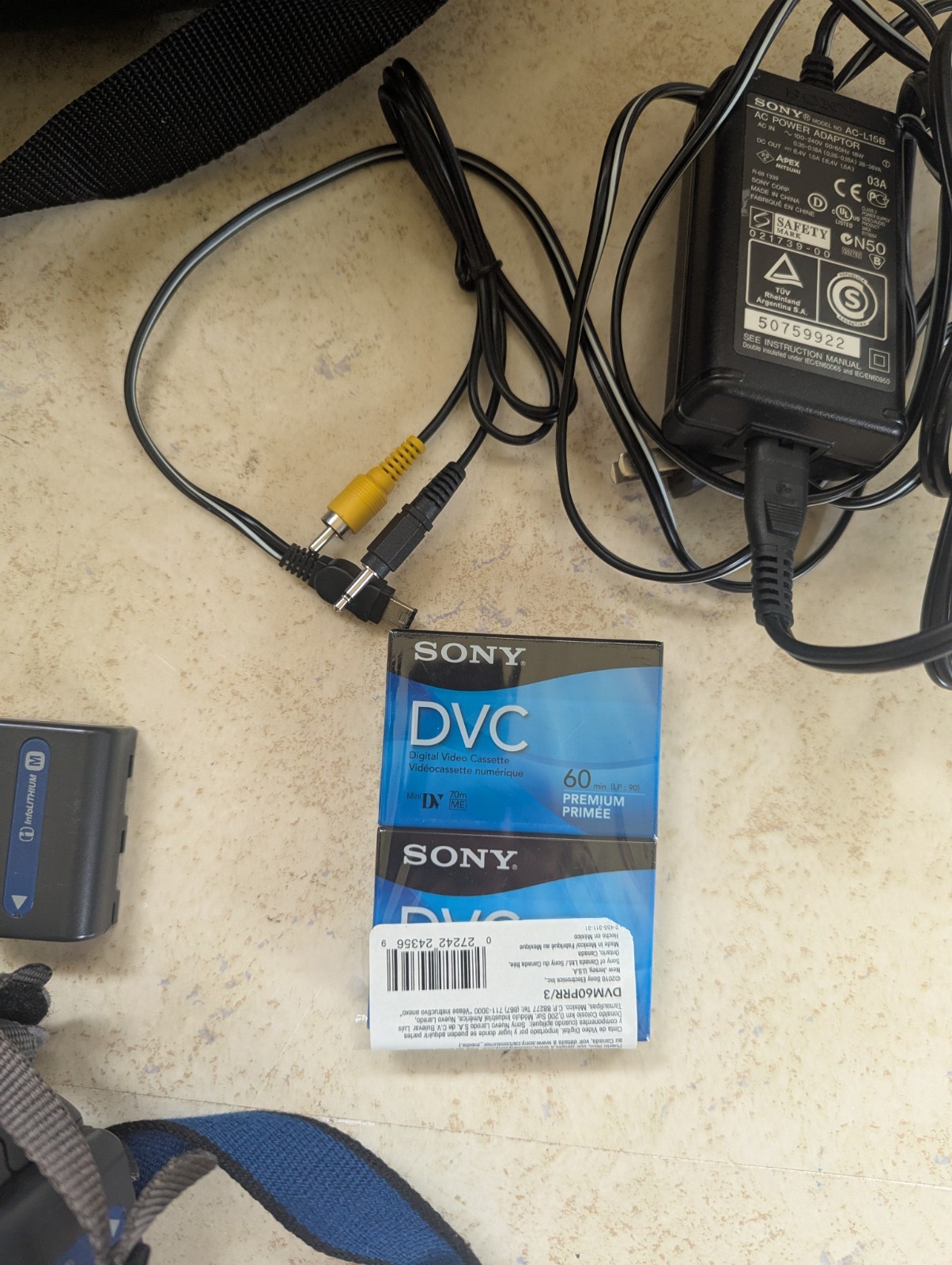 Camera is tested and working well Batteries are both charged and seem to hold charge (though I only used this camcorder for 15-20 minutes to test) It is possible these older batteries may not hold charge as long as brand new ones Includes everything seen, black case, strap, two batteries, charger, 2 new cassettes, and remote (did not test remote but it looks like new)