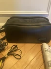 The cassette loader will not fully come up. You press the button and it just lifts up a bit or sometimes not at all. There is no battery charger. The power cord only charges it a little, it will not fully charge the camera. Bag has a small rip.