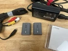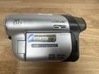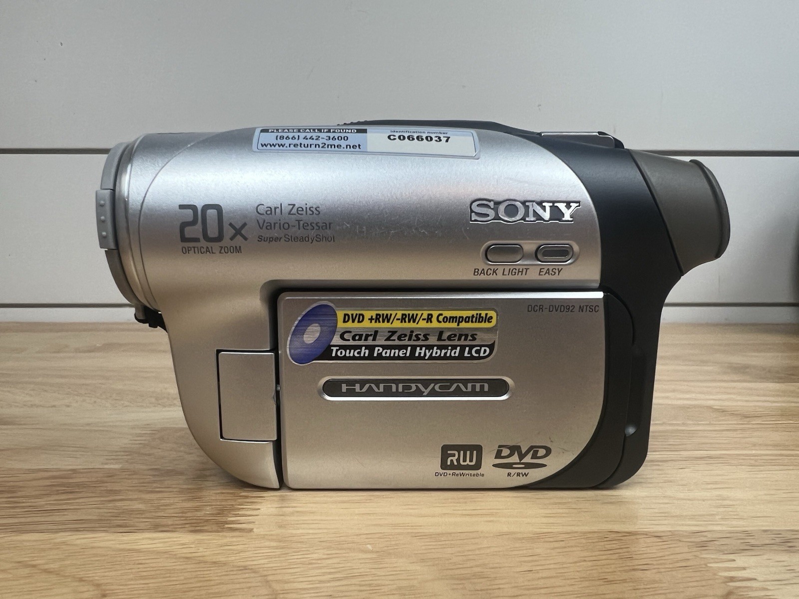 The Sony Handycam DCR-DVD92 Camcorder is a video recording device with a 20x Carl Zeiss lens. This camcorder uses the DVD media format. This device has been tested and works as expected. Two batteries are included, but they do not hold their charge for long. The device does work perfectly when plugged in despite battery charge. Also includes charging cable, audio/video cable, blank generic 1.4GB DVD-RW disc, strap, and carrying case. The camcorder device is in excellent condition with only a few minor surface scratches. The carrying case and strap show signs of use, particularly on the leather section with Sony logo. See all pictures for condition.