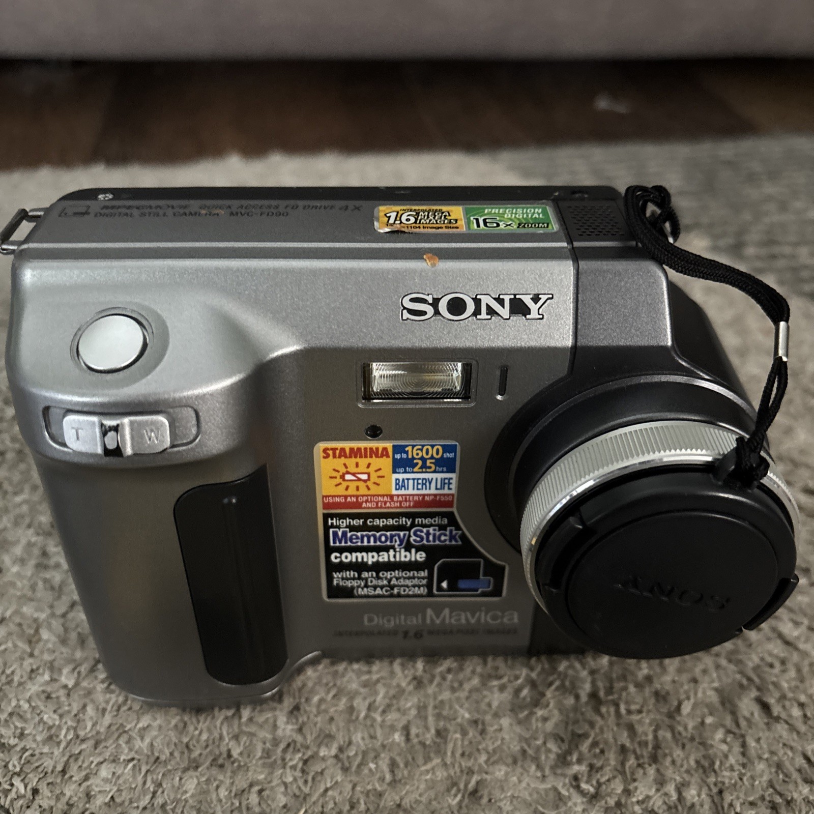 This camera is untested the battery comes with it an a floppy disc. With stuff on it. Not too sure what. Please be careful when downloading. As a precaution. The Sony Mavica MVC-FD200 2.0MP Digital Camera in Black & Metallic Silver combines a 2.0MP CCD sensor with a 6x digital zoom for high-quality images. It features a 2.5" color LCD display, built-in flash with various flash modes, and sharpness control for customizable settings. With additional features like red-eye correction and auto power save, this point-and-shoot camera is easy to use and versatile for various shooting situations. The camera also includes a 3.5" 1.44MB floppy drive for storage, making it a convenient and reliable option for capturing memories.