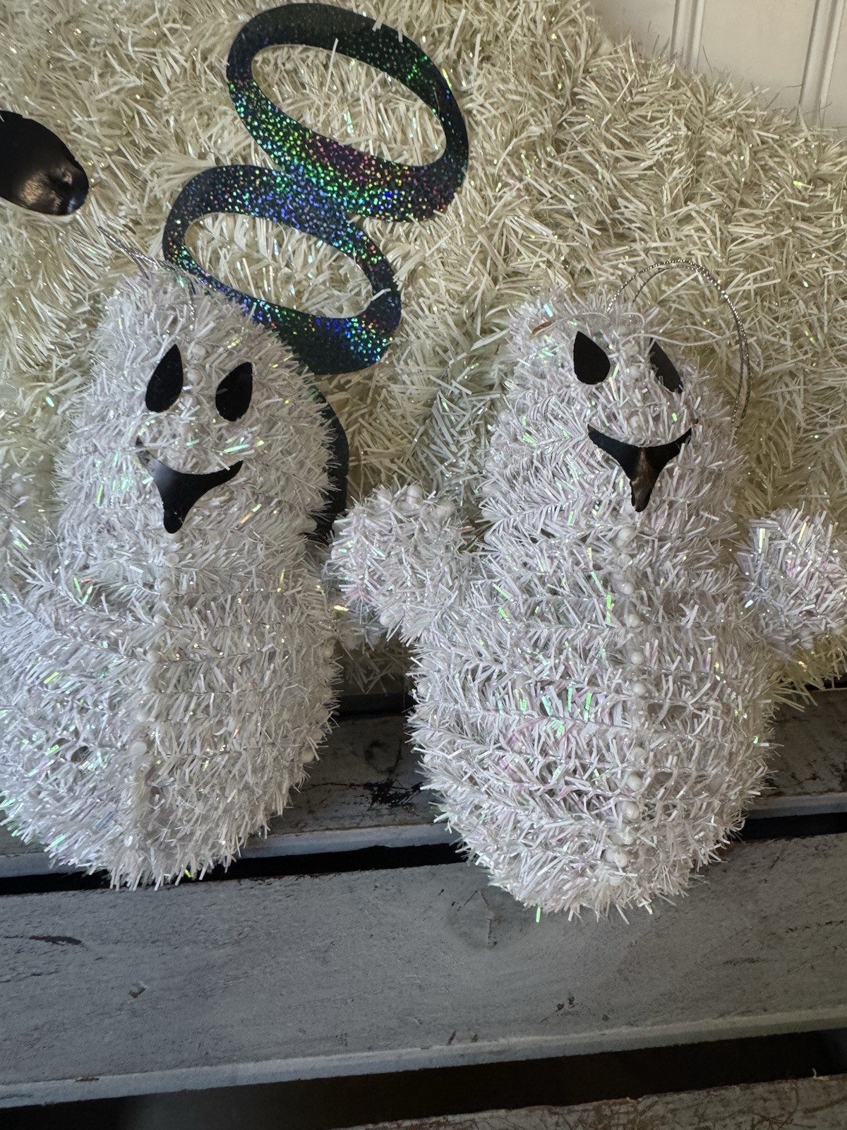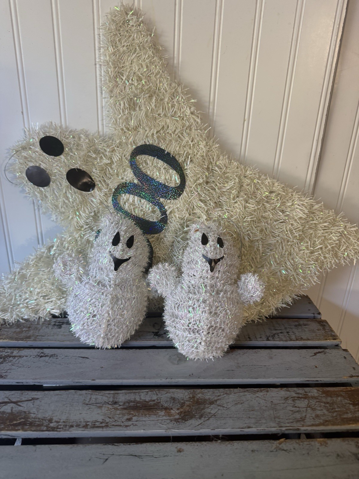The Hanging Tinsel Decoration Prop Spooky Ghosts is a Halloween-themed party decoration perfect for adding a spooky touch to your celebration. These 21" and 5" hanging tinsel decorations feature a ghost pattern in an off-white color, made of plastic and tinsel material. With a spooky ghost theme and Halloween occasion, these decorations are ideal for creating a festive atmosphere at Halloween parties. The set includes three units, making it easy to enhance the decor of your home or event space with these whimsical and spooky additions.