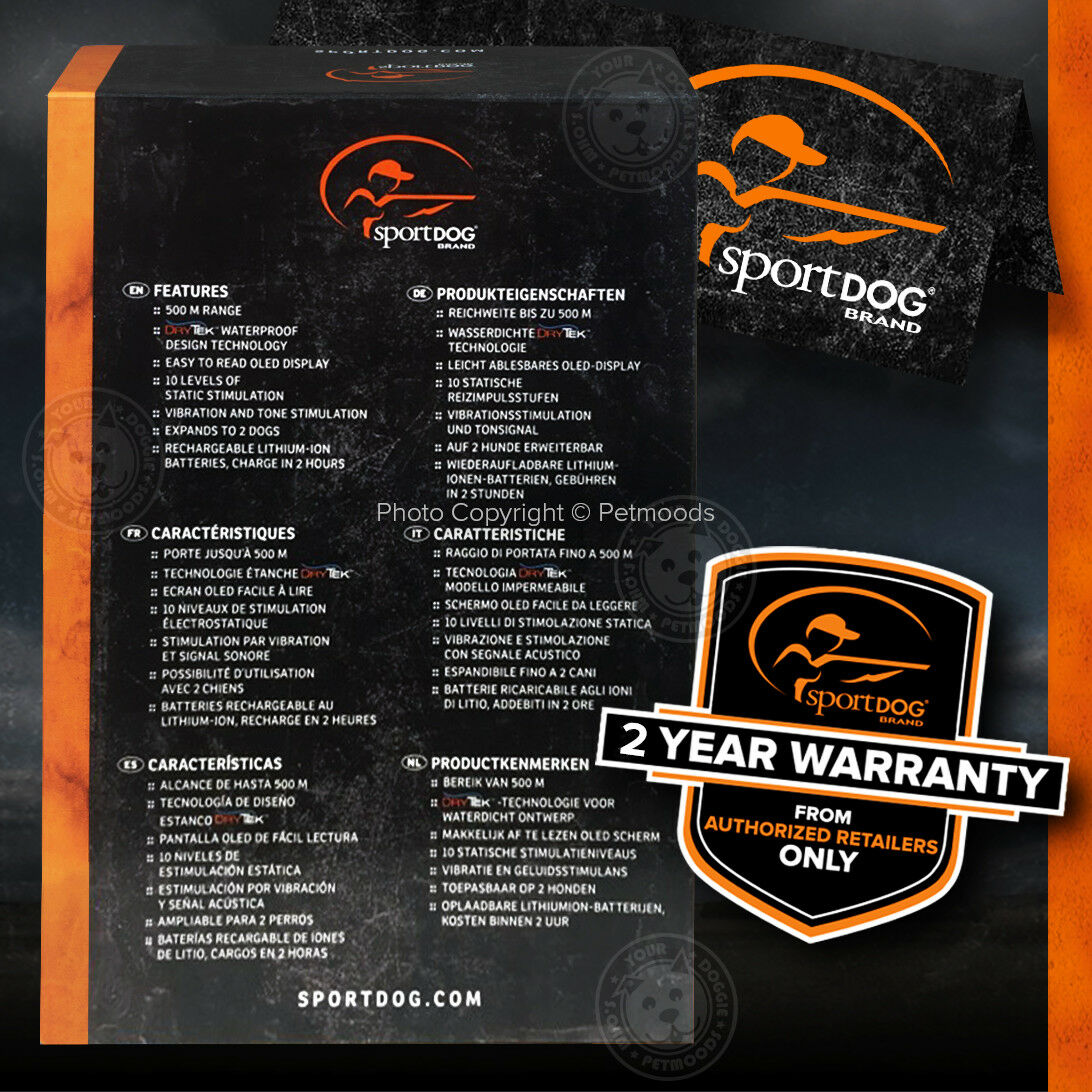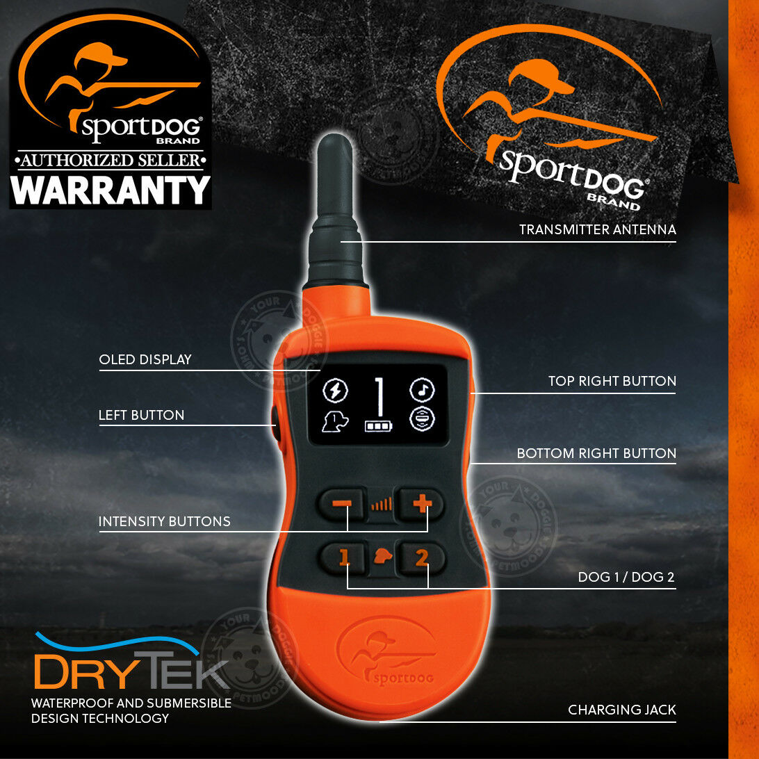 STORE ABOUT NEWSLETTER CONTACT FASHION HEALTH & SPA BEDS & FURNITURE DINING & TOYS SPORT & TRAINING TRAVEL & SAFETY SportTrainer SD-575/SD-575E Dog Training System by SportDOG Designed By Folks As Ducky As You The SportDOG SportTrainer 575 Training System is designed for field training, close-working dogs and hunting. The New SportTrainer features an easy-to-read OLED screen, so you can view the selected dog, static stimulation level, mode, as well as battery status, with just a glance. This, combined with large plus/minus buttons to easily toggle among dogs and stim levels, makes the SD-575 is perfect one dog or multi-dog training or hunting situations. With SportDOG® Add-A-Dog® Collar Receivers (sold separately), the remote trainer can be expanded to control up to 2 dogs at once. And both the handheld/transmitter and receiver/collar are fully waterproof and submersible. " Click Here to add an extra Dog Collar " The remote trainer 575 control up to 2 dogs at once. And both the handheld/transmitter and receiver/collar are fully waterproof and submersible 100% Drytek up to 25 feet. The SportTrainer 575 Remote 2 preset transmitter modes let you choose the best training configuration for your dog with 10 levels of both continuous and momentary static stimulation, as well as vibration and tone options in select modes, allow you to customize this system to fit any situation or dog’s temperament. Features: 500 Yard Range (457.2 m) Easy-to-read OLED Display 10 instantly selectable static stimulation levels with LOW - MEDIUM stim ranges Tone & Vibration Options: Instantly select stimulation, vibration or tone in select modes Compact Handheld Remote Transmitter For dogs 8 pounds or larger (3.6Kg or over) with neck sizes 5" - 23" Expandable to control up to 2 dogs at once with Add-a-Dog collar receivers (SDR-AF sold separately) 100% Drytek™ Waterproof & submersible collar & transmitter up to 25 feet (7.6 m) Rechargeable Lithium-Ion Battery Low battery indicator on both handheld remote transmitter & collar receiver Battery Charge Time: 2-Hour Quick Charge Battery life is estimated at 50-70 hours per charge Push-button ON/OFF switch activated at the collar Customizable handheld remote transmitter settings Change stimulation intensity from the handheld remote transmitter Collar Receiver on 3/4" Biothane Orange Collar Strap No external collar antenna SportDOG Two Year Warranty Only From Authorized Retailer Compatible with SportDOG: FieldTrainer® 425 (SD-425) SportHunter® 825 (SD-825) AUTHORIZED SportDOG RETAILER By purchasing SportDOG, PetSafe, Innotek products from PetMoods (Authorized Online Retailer) Your Warranty is 100% valid. *If you purchase RSC product(s) via the internet from anyone not displaying these Authorized Retailer Logos, RSC will have the right to declare all of its warranties applicable to those product(s) null and void. Buy RSC products with confidence from an Authorized Retailer. Contents: SportDOG SD-575 / SD-575E SportTrainer Training System One SportDOG Remote Transmitter with Removable Antenna One SportDOG Collar Receiver on 3/4" Biothane Orange Strap Adjustable SportDOG Short Contact Points SportDOG Long Contact Points SportDOG Vibration Contact Points SportDOG Dual Charging Power Adaptor SportDOG Travel KIT EU, UK & AU Plugs SportDOG Lanyard for transmitter (Neck Strap) Test Light Tool Quick Start Guide SportDOG Two Year Manufacturer Warranty with Owner's Manual / Operating Guide FREE SportDOG after sales setup, full USA support and replacement with a valid Warranty FREE Shipping to the lower 50 USA continental States SHOP PETMOODS STORE FOR SPORTDOG BRAND SportDOG™ training e-collars have been proven safe, comfortable, and effective for all dogs over 8 pounds. Consistent, correct use of our products allows you to reinforce commands and correct misbehavior even from yards or miles away. The Remote Transmitter sends a signal, activating the Collar Receiver to deliver a harmless stimulation. With proper training, a dog will learn to associate this signal with a command. All SportDOG e-collars feature adjustable stimulation levels so you can tailor the stimulation level to your dog’s temperament, eliminating the risk of over-correction. We guarantee that Petmoods is authorized to sell this product and that every brand we sell is authentic with warranties See our other items ABOUT US PAYMENT SHIPPING RETURNS WARRANTY CONTACT US ABOUT US PAYMENT SHIPPING RETURNS WARRANTY CONTACT US Petmoods is where smart dog lovers shop, we never discriminate based on the breed, age, size or ability. We are only discriminating when it comes to the quality of products. Your dog offers you love all of the time and deserves only the best !!! Immediate payment required. We accept all forms of PayPal and all major Credit Cards or debit cards: Petmoods has been selling online since 2005 and we are committed to customer satisfaction. There is nothing more important to us than you! We want happy customers. Most orders shipped within the Continental USA qualify for FAST 'N FREE SHIPPING. If there is a problem with your item, please contact us within 30 days of receipt of the item. Buyer will be responsible for return shipping charges if the item is not defective. Shipping and handling costs are not refundable. 15% Restocking Fee will be charged if the product has been used. By purchasing any products from us (Authorized Online Retailer) you are ensuring that your warranty is 100% valid. If your product fails due to a manufacturing defect we will replace without charge. Only original, unaltered and unmodified materials and workmanship are covered by this policy. The warranty does not cover damage caused by accident, improper care, negligence, normal wear and tear, or the natural breakdown of colors and materials over an extended time and use. PETMOODS | Contact Us | Store Hours: 10am - 5pm EAST, Monday - Saturday Florida buyers will be charged sales tax during the checkout process. #element_30
