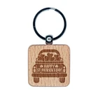 St. Patrick's Day Truck Engraved Wood Square Keychain Tag Charm