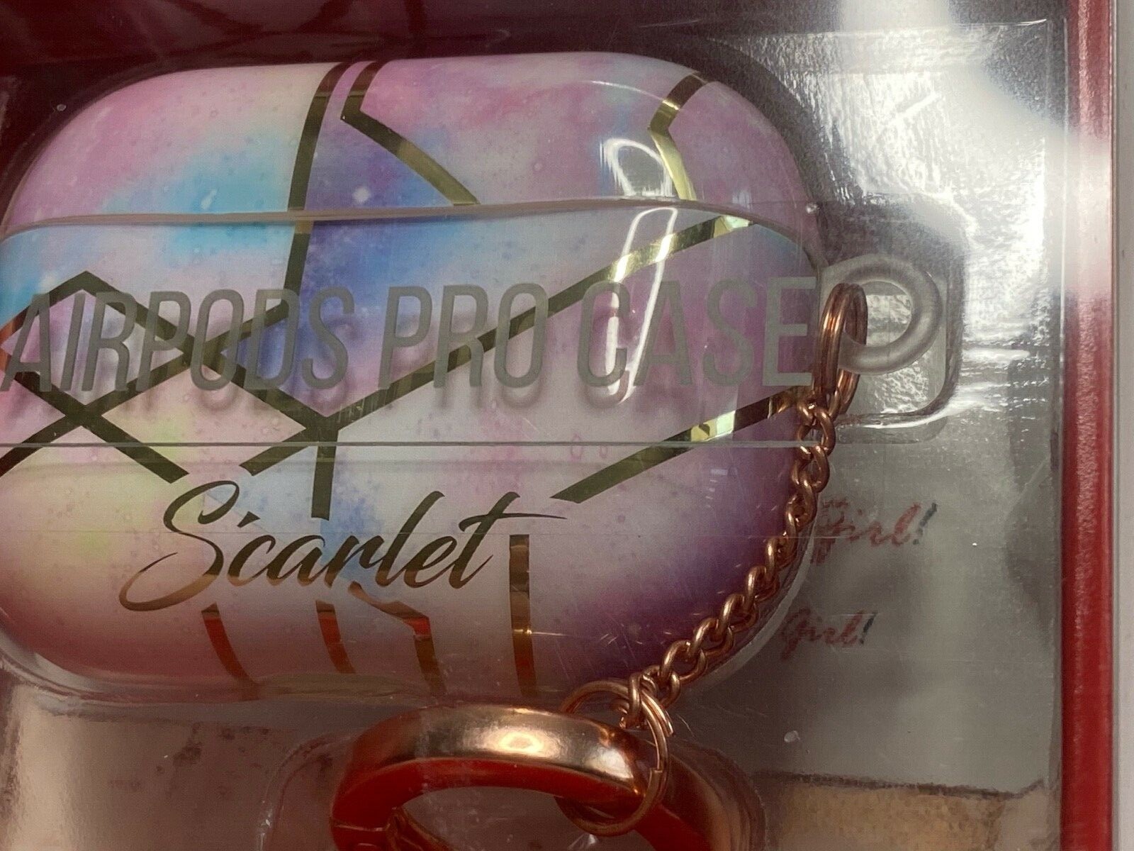 New, open box, Ghostek AirPods Pro Case "Scarlet" edition Photos are of actual item above. "Scarlet" lettering on product Design: Stardust Includes Carabiner QTY: 1