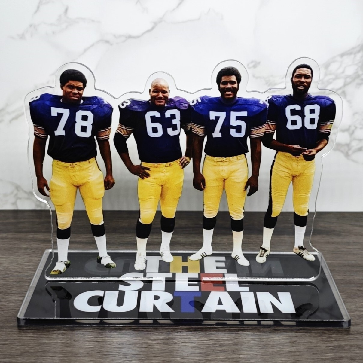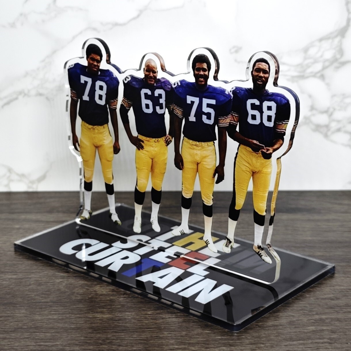 Item Details: Laser-cut 2D (Two Dimensional) acrylic standee Measure: Approx 6.4 inches tall One side design Material: 100% Acrylic Add this to your never ending collection of football memorabilia. This laser-cut two dimensional figurine depicts your favorite player in action. Whether displayed in your home, office, for fan cave, this item is perfect for showcasing your love for football.