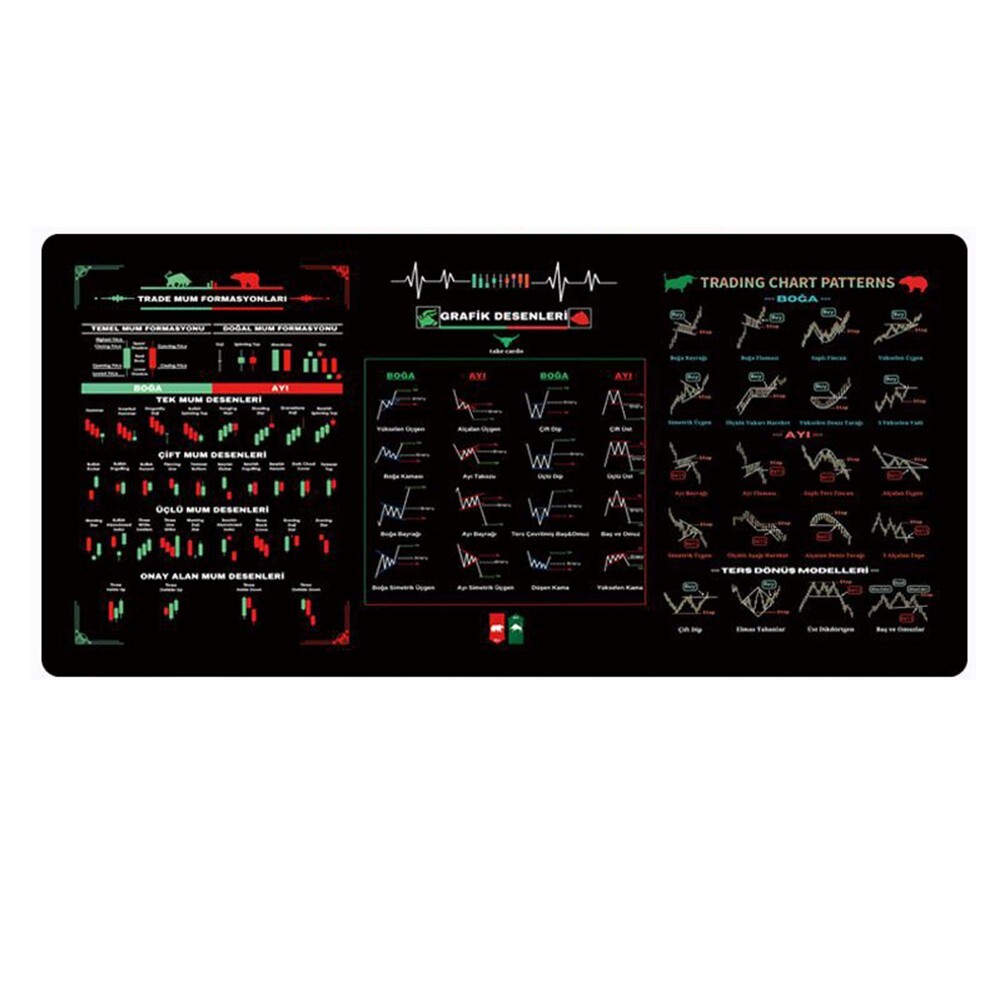 This mouse pad is a trader's dream—huge space for smooth mouse moves, plus key stock market cheat sheets right under your wrist! The durable rubber base stays put while the stitched edges keep it looking sharp even with daily use. Perfect for quick reference during fast-paced trades, and the size gives plenty of room for notes or a keyboard. No more searching charts—everything you need is right there while you work. Sturdy, practical, and a total game-changer for staying on top of the market!