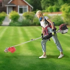 Key Features Sturdy and Durable: This product is mainly made of PP, aluminum alloy, manganese steel, and nylon, with high hardness, high abrasion resistance, anti-corrosion, anti-rust performance, and long service life. High Power: The high-quality engine with 35.88CC displacement and power up to 0.75kw provides the product with super high speed (8500r/min ), thus effectively improving your working efficiency. Two Blade Heads: The 2T cutting edge blade head with a roller is suitable for paddy pool ridge, crop field, etc. The multi-purpose mowing head is suitable for orchards, vineyards, etc., which can avoid accidentally injuring or cutting saplings when mowing. High Comfort: The cordless design and gasoline power source make this product more suitable for outdoor use without String Trimmer Cordless Edger &Weed Trimmer 35.88CC 4-Stroke Brush Cutter Garden Key Features Sturdy and Durable: This product is mainly made of PP, aluminum alloy, manganese steel, and nylon, with high hardness, high abrasion resistance, anti-corrosion, anti-rust performance, and long service life. High Power: The high-quality engine with 35.88CC displacement and power up to 0.75kw provides the product with super high speed (8500r/min ), thus effectively improving your working efficiency. Two Blade Heads: The 2T cutting edge blade head with a roller is suitable for paddy pool ridge, crop field, etc. The multi-purpose mowing head is suitable for orchards, vineyards, etc., which can avoid accidentally injuring or cutting saplings when mowing. High Comfort: The cordless design and gasoline power source make this product more suitable for outdoor use without the need for connecting cables and electricity, with high flexibility. The adjustable position of the handle allows you to control its direction freely and conveniently, thus making mowing easier and more precise. Easy to Carry and Store: The carrying strap allows for easy carrying while lightening the load on your hands. Its detachable design ensures convenient storage when not in use. Safety Protection: The throttle safety lock prevents accidental touching of the accelerating throttle and causing an accident to ensure the safety of users during operation. Efficient Heat Dissipation: The multiple heat dissipation holes on the engine can effectively speed up the heat dissipation inside the engine, thus guaranteeing the efficient and smooth running of the engine. Simple Assembly: Thanks to the long pole with a fastener design, complete installation components, and a detailed English manual, you can assemble this product or replace the blade heads easily and quickly. Protective Shipping: Multiple packaging of foam shafts, bubble wrap, plastic bags, sponges, and rigid cardboard boxes can protect the product from wear and tear during shipping so that you can receive an almost non-destructive product. Details Large Fuel Tank: The 22&2.7 oz fuel tanks ensure long-term use without frequent refueling. Grass Baffle: It can effectively prevent the broken grass from splashing around when mowing the lawn, thus making it easier to clean up the lawn after mowing and ensuring your safety. Funnel: The red funnel makes it easier to add fuel and less likely to leak. Starting Method 1. Just add four-stroke gasoline engine oil to the oil tank to the bottom thread. 2. Add 93 unleaded gasoline to the fuel tank. 3. Press the oil bubble to pump oil until the oil bubble is full of fuel and the fuel return pipe returns oil. 4. Put the flameout switch in the "I" position (0 for flameout, I for start). 5. Toggle the damper upward to close the damper (hot start does not need to close the damper). 6. Pull the starter puller at a constant speed until it starts (if there is a start response after pulling 5 times but it fails to start, please pull the damper to the following to open the damper in pulling). 7. After the engine starts, pull the damper to the bottom to open the damper, slowly pull the throttle trigger, lightly add oil to the throttle and test whether it is normal. Application This product is mainly used for home lawn mowing, orchard mowing, tea garden mowing, cutting rice and wheat, cutting corn stalks, reed harvesting, pond side weed removal, bushes cutting, etc., and mostly used in agriculture, forestry, landscaping, and urban greening. Specification Color: Red, Silver Material: PP, Aluminum Alloy, Manganese Steel, Nylon Assembly Required: Yes Usage: Side-mounted Displacement: 35.88CC Power: 0.75kw Rotation Speed: 8500r/min Idling Speed: 2800-3000r/min Engine Type: 4-stroke Gasoline Engine Carburetor Type: Diaphragm Carburetor Gasoline Tank Volume: 650ml/22 Oz Oil Tank Volume: 80ml/2.7 Oz Engine Size: 26*22*27cm/10.24*8.66*10.63in Product Length: 1.75m/5.74ft Gross Weight: 8.5kg/18.74 lbs Package Size:105*25*25 cm/41.34*9.84*9.84 in Package Included 1 * Weed Wacker 1 * Oil Pot 1 * Funnel 1 Pair* Goggles 1 * Carrying Strap 1 * English Manual All Accessories for Installation Notes The oil mixture ratio should not be wrong or deviated. Please do not use poor-quality motor oil as the matching motor oil. Please check whether the blade tool is firmly installed before starting the engine, and check whether the blade tool is intact after each work. When starting the engine, personnel need to stay away from 32.81ft or more. Please wear gloves(not included) and goggles during use. Please change the engine oil of the new machine every 4 hours of work and every 20 hours of work after 5 times (change the oil when the engine is warm). Please check the oil before each work to see if it is missing and add it to the right position. Fuel needs to be replenished as it is used. Refueling should be kept away from the fire source for more than 49.21ft, and open flame operation such as smoking is prohibited. The sponge filter inside the air filter needs to be cleaned every 50 hours of work (the cleaning cycle should be shortened when the working environment is dusty), and it can be cleaned with detergent