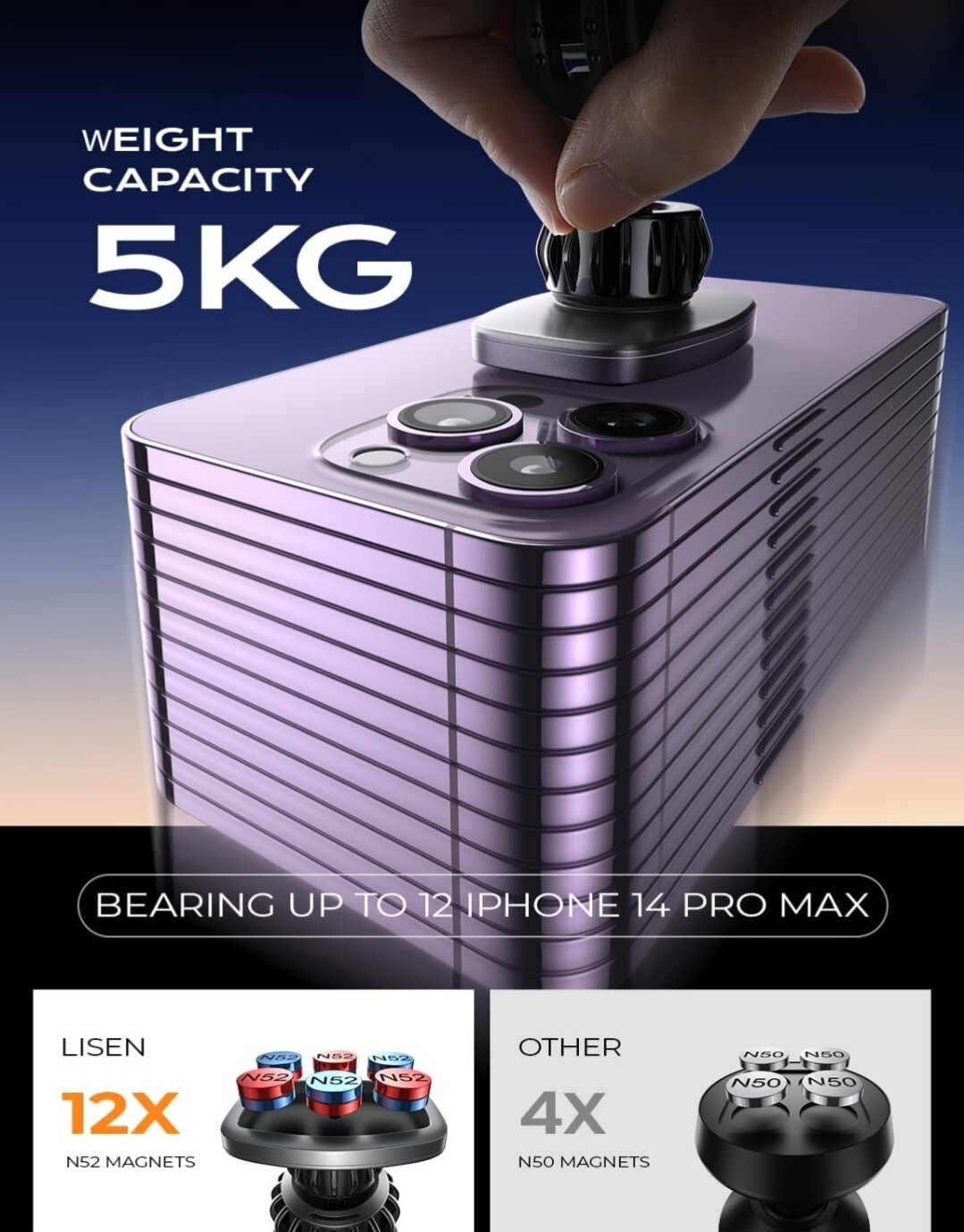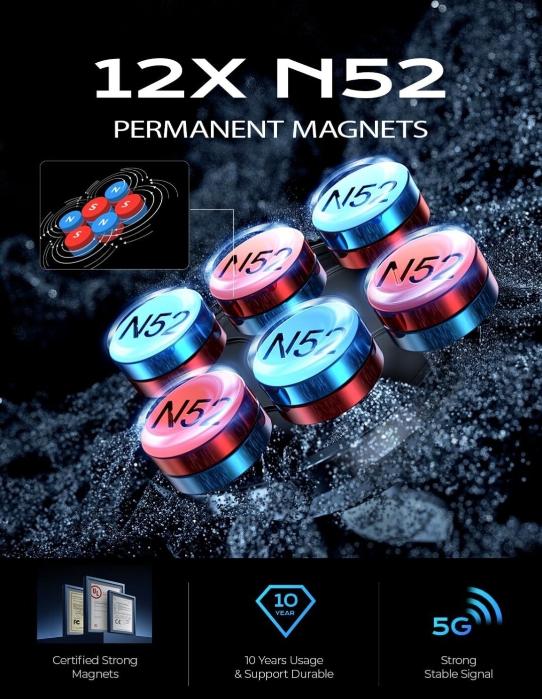 LEGENDARY STABLE MAGNETIC PHONE HOLDER FOR CAR: With 2 3M adhesive pads, 6 magnets and an adjustable arch bridge design, this is definitely the most revolutionary magnetic phone car mount on the market. 2 sticky pads firmly stick the mount to any flat or curved surface. 6 magnets can hold all large mobile phones with metal plates. Arch bridge adjustment design can provide a larger and better field of vision. You won't find a second such powerful and ingenious phone mount for car on the market. DOUBLE ADHESIVE PADS, LARGER STICKING AREA: This magnetic phone mount for car adopts the design of double 3M adhesive pads with a larger area, and the sticking area is at least 200% bigger than other ordinary single adhesive pad one. The larger sticking area can fit the curved dashboard to the maximum extent. Thereby improving the stability and durability of the adhesive magnetic car mount by 200%.That car phone holder mount comes with 2 additional high quality 3M adhesive pads for replacement. SUITABLE FOR CURVED AND FLAT SURFACE: This magnetic phone holder for car can be stably mounted on dashboards and on other varieties of horizontal, curved and vertical surfaces. That magnetic phone mount for car may be fastened to nearly any position you desire, unlike other magnet phone holder that can only be attached horizontally and on a flat surface. The arch design can be adjusted 180° for a good vision.This small and elegant mount, does not take up space, and complements your car interior