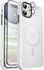 Strong Magnetic for iPhone 11 Case,[Compatible with Magsafe][Glass Screen Protector+Camera Lens Protector] Slim Thin Shockproof Cover Case for iPhone 11 6.1 inch, Frosted White