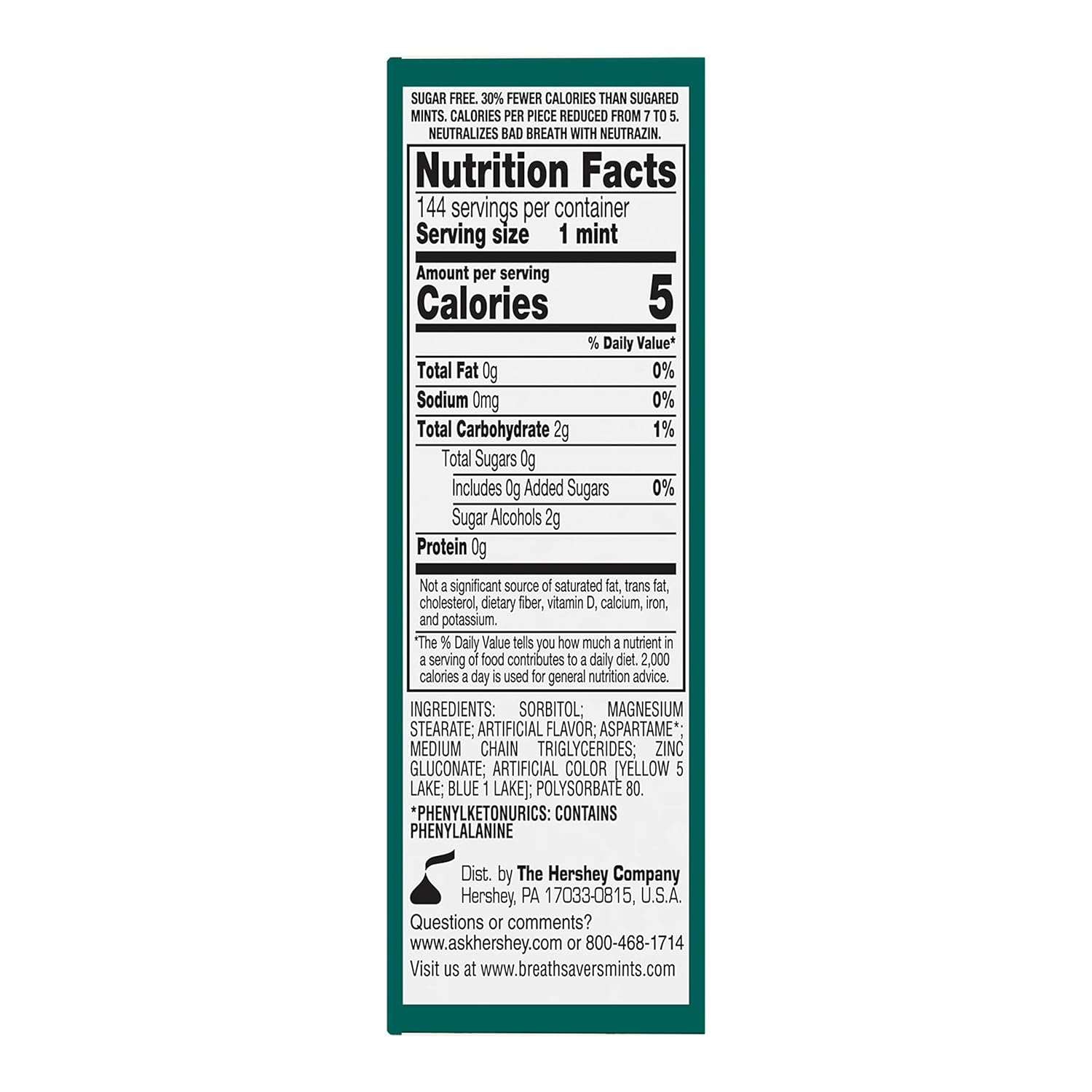 Contains twenty four (24) 0.75-ounce rolls of BREATH SAVERS Wintergreen Sugar Free Mints in a box Freshen up your breath anytime, anywhere with BREATH SAVERS wintergreen sugar free breath mints that fit right into your pocket or purse Sugar free breath mints in 24 individually wrapped rolls for on the go convenience Add a little minty freshness to your anniversary date night, job interview or any other occasion where you want to impress with your fresh breath Cool, crisp wintergreen flavor in every sugar free mint that will keep your breath fresh and your mouth feeling invigorated Freshen up your breath with BREATH SAVERS wintergreen sugar free breath mints. Keep a roll in your purse, pocket, car, or desk drawer at work for when you need a quick breath refresh any time of day. These rolls of sugar free breath mints are perfect for moments when you need to be up close and personal but don't want to worry about your breath. Whether you're heading to work, a meeting, or a date, BREATH SAVERS wintergreen sugar free breath mints are the perfect addition to your daily routine.