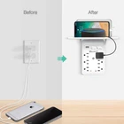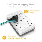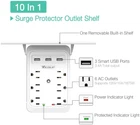 Surge Protector 1080J with 6 Outlets and 3 USB , and Convenient Removable Shelf Outlet Extender with Shelf: 6 AC outlets with 1080J Surge protector, 3 USB ports(5V/3.4A total), Safety ground indicator Light, surge protection indicator light, 1 hanging hole for all types of Standard Electrical Outlets, like duplex outlet, GFCI outlet, Decor outlet, USB receptacle. Can use screw to secure it onto standard Electrical Outlets. Multi Outlet with Create Extra Space: Fit all types of Standard Electrical Outlets, just plug in. Use the included screw to secure it onto the wall. now you have a sturdy shelf. The 8.1’’ x 3.3" shelf is great for hold a variety of household items including Alexa, iPhones, Androids, smartphones, tablets, wireless charging, electric toothbrushes, Sonos, razors, toothpaste, spices, and so much more! USB Wall Charger: 3USB charging ports (total output DC 5V/3.4A total), 5V 2.4A Max per port shared rating; high-speed USB ports automatically detect charging devices and deliver optimal charging speed, up to 2.4A per port. Fits for iPhone Xs/XS Max/XR/X/8/7/6/Plus, iPad Pro/Air 2/Mini 3/Mini 4, Samsung S4/S5, and more. Surge Protector Outlet: The multi plug outlet provide surge protector against electrical spikes. Three complementary Surge Protection Circuits, TVS(transient voltage suppressor) MOV(metal oxide varistor) GDT(gas discharge tube), with response speed less than 1Ns, and minimum energy-absorbing capacity of 1080 Joules, its response time is much shorter than the traditional MOV surge protector circuit, It truly provides great protection of your precious plugged-in devices. Our After Sale Service: ETL Certified,Our friendly and reliable customer service will respond to you within 24 hours. You can purchase with confidence, with our 30-day return and 12-month replacement. Specifications: Input Voltage: 100-240VAC; 60HZ; Max.Current: 15A; Max.Power Rating: 1875W; USB Port Output: DC 5V, Total 3.4A; Item Dimensions: 5.74 x 3.74 x 1.20 inches Material: Fire-resistant ABS Electrical Rating: 125V/15A/1875W Joule Protection Rating: 1080J Output Per USB Port: DC5V-2.4A Max USB Total Output: DC5V -3.4A 17W Package list: 1 x Electric Wall Outlet with USB Charger; 1 x Instruction manual; 1 x Paper Box; Notice: Do not exceed the total rating or it may cause damage to the unit and fire hazards
