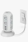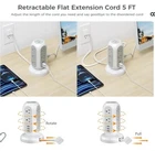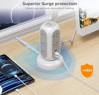 This power strip tower by Tessan is a versatile and reliable surge protector with 11 outlets and 3 USB ports. It is designed to accommodate a wide range of electrical devices while ensuring safety and protection against power surges up to 1050J. The tower has a compact and space-saving design with a flat plug and a retractable cord that can be adjusted to a length of 5FT. In addition to surge protection, the power strip tower features indicator lights, an on/off switch, and a power indicator light. It comes with a 1-year manufacturer warranty and is made of durable ABS+PC plastic material. The power strip is compatible with voltages ranging from 110~240V AC 50/60Hz and can handle a maximum current of 13A or 1625W. It is recommended for indoor use and is ideal for households, offices, and other settings where multiple devices need to be charged or powered.