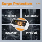 Product Description 900J Surge Protection The multi plug outlet surge protector protects your devices, such as computers and other electrical appliances, from power surges and spikes, providing a secure and dependable charging environment. Play Video Widely Spaced Outlets The outlet extender features 2 AC power outlets on the front, spaced 2.2 inches apart, allowing the use of 2 large plugs without blocking each other.