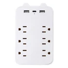 Surge Protector Outlet Extender Multi 6 AC Plug + 2 USB Charger Wall Adapter Features: 【9 IN 1 SURGE PROTECTOR】 This surge protector comes with 6 outlets (1300-3000W/13A) and 2 USB + 1 TYPE-C charging ports (total 5V/2.4A), which can power up to 6 electrical devices at the same time; ideal for computers, TVs and other household electrical devices. 【OVERLOAD PROTECTION】Built-in voltage sensing smart circuit detects the current power, when the rated power is exceeded, the switch will automatically turn off to ensure the safety of your devices.1382℉ fireproof PC case with high quality components also prevents the device from overcurrent/overcharge/overheating. 【Wall Mountable】Fixed to the wall design. Fits perfectly with duplex outlets, just plug it in and use it. Specification: Product Size: 14.5cm X 9.2cm X 3cm Net weight 150g Material: ABS Color: white Holes: (total 9) 6 American Standard +2USB +1TYPE-C Specification: American Standard Conductor material: copper Input voltage: AC100-130v, 50-60HZ Maximum total output power: 1300W 2USB + 1TYPE-C total output: 5V 2.4v Package Included: 1 X 9 in 1 USB Wall Outlet Extender