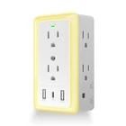 ✈️【MULTIFUNCTION】The power plug you will get which has 6 AC outlets and 3 USB ports(1 USB C included), with surge protector bulited in makes it more safe by using. And it can be charged by multiple appliances simultaneously. ✈️【SPECIFICATIONS】This 6 wall outlets extender is rated at 15 amps at 125V~total. Six devices may be plugged into the tap, but their combined load must be less than 15 amps at 125V~or 1875 watts. 3 USB ports total 3.4 A, each USB-A port features 2.4A Max output, USB-C charging port features 3A MAX. The LED Rate is 15W, and the maximum absorbed energy is 1500J. ✈️【EASY USING】Securing onto the wall design. Fit duplex outlet perfectly, The wall splitter is equipped with screws (optional), which can help stabilize the wall outlet and prevents the outlet from falling.NOTE: For GFCI and USB receptacle outlet, the white plastic post must be cutted off before using. ✈️【INSTRUCTIONS OF NIGHT LIGHT】There are automatic/manual switch built in this wall plug. The light sensor is activated after lightly touched--in the daytime, the LED light flash twice and then turn off automatically, and it will turn on after dark. Tap again to turn off the auto mode. The manual mode switch has three different brightness, you can change this by touching. ✈️【GUARANTEED】The device complies with part 15 of the FCC Rules.This plug converter has short-circuit protection, over current protection, over-voltage protection, overcharge protection and overheating protection. With our excellent after-sale,30-day return and 12-month replacement, pls do not hesitate to get it.