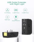 Surge Protector Outlet Extender with Night Light, 5-Outlet Splitter and 4 USB Ports (2 USB C Charger), Multi Plug Wall Outlet for Home, Dorm Room Essentials 【9-IN-1 Wall Outlet Extender】 - 5 AC outlet extender (3 sides, 125V, 15A, 1875W) with 2 USB-A and 2 USB-C charging ports, 1080 joules surge protector, LED night light on the bottom. The screw included can be used to secure it on duplex outlet. Connect your devices conveniently with the multiple outlet plug. 【2 USB- C & 2 USB-A】USB C charging port features 3A Max, USB A charging port features 2.4A Max, compatible with almost all usb devices. The actual current is decided by the demand for the devices. 【Smart Night Light】- With Dusk-To-Dawn Sensor, automatically turns on when ambient lighting becomes insufficient. The soft warm light helps create a comfortable atmosphere that is ideal for bedroom, living room, dining room, kitchen etc. You could also choose to turn on/off the nightlight manually. 【Double Stability & Wide Space】The screw included can be used to secure it on duplex outlet. The plastic prong at the back is for stable purposes also. For USB receptacle and GFCI outlet, the plastic prong needs to be cut off before use. 3-sided design and 1.7 inches large space between 5 sockets make it easier to use for all kinds of equipment even oversized power adapters. 【Surge Protection & Super Safety】- Three complementary Surge Protection Circuits, TVS(transient voltage suppressor), MOV(metal oxide varistor), GDT(gas discharge tube), with minimum energy-absorbing capacity of 1050 Joules, is much more quickly and reliably than other traditional MOV surge protector circuit. It truly provides great protection of your devices. 5-Outlet Surge Protector with Night Light SHIPPING Domestic Buyers - We ship within 3 business days of payment, usually sooner - We offer FREE shipping on all orders! - We only ship to the lower 48 states, no APO/FPO addresses or PO Boxes allowed - We have confidence in our products, but if you are not fully satisfied please contact us within 30 days of purchase and you will get full refund. International buyers – please note: Import duties, taxes, and charges aren't included in the item price or postage cost. These charges are the buyer's responsibility. - Please check with your country's customs office to determine what these additional costs will be prior to bidding or buying. Return Policy - This product comes with 30-Days Money Back Guarantee. - If you receive an item and it doesn't work properly or you don't like it because of any reason at all, - we have a 100% refund/return policy. We will ship you a new item or refund your money for the full sale amount. - For all returned products, buyers MUST contact us for the returning address. * Order Cancellation Policy ** You can return a product for up to 30 days from the date you purchased it. 1. The seller reserves the right to cancel the special case only due to eBay cancellation fee. 2. The decision of seller is the final. 3. The seller will respond to the cancellation request within 2 business days. Please wait for the result of cancellation. 4. In case the cancellation is not completed by some reasons, the buyer can follow the options below to get the refund. 4.1 The buyer can reject the item when it arrives. 4.2 The buyer can send the item back to the seller within 30 days If the buyer receives item (USA Shipment ONLY). The seller will provide the FREE return label to the buyer when the buyer opens " Return Item" case on eBay by using the reason as "Change my mind" ONLY. 5. When buyer has placed the order. The order will be processed and completed by automatic warehouse system within 5 minutes. In case that buyer sends the cancellation request after 5 minutes of placing the order, the request will be rejected. **Sending direct message to cancel the order is not allowed for every case.* Return Policy For the return case - If buyer would like to return the items for refund or replacement, please CONTACT SELLER to receive the free return label from seller. The refund or replacement will be processed with the tracking number of return label which is provided by seller only. The other ways of return which are not approved by seller will not be processed for the refund or replacement.