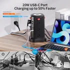 Smart Power Strip with Night Light: PASSUS power strip tower with night light mode features three brightness levels. The soft and comfortable light is just enough to light the surrounding area, enhancing safety at night. You can manually turn on/off the night light to meet your needs. PD 20W USB C Fast Charging: One USB-C port with a maximum output of 20W. The 1*USB C port of the surge protector power strip charges up to 50% faster than the normal charger, which will save you more time. 4 Energy Saver ON/OFF Switch Design: The USB charging station for multiple devices has 4-separated switches that control 4 parts, making it easy to turn off multiple electronics at once when not in use. 10FT Extension Cord with 45° Flat Plug: The extension cord 10ft with multiple outlets has a 45° flat plug, which fits easily into hard-to-reach places behind your bed or sofa. All-Round Safety Protection: To protect you and your valuable electronic devices, this extension cord with multiple outlets has advanced protection technology and, CE safety certification. The 1800J surge protector is made of 1382°F fire-resistant ABS+PC material. Product Description 7-Point Safety System Multiple Safety Protection: The Power Strip Surge Protector has passed CE, FCC certification, this Tower Extension Lead with USB has Overload Protection, Lightning Protection, Short-Circuit Protection, Over-Current Protection and more. Give your devices a good protection. Surge Protector Power Strip Built-in Surge Protection: The power tower with USB ports can protect your expensive devices against power spikes. Besides, a built-in circuit breaker will auto-activated if there is a surge (lightning), overload, over-current or overheat. Voltage Compatibility 100~250V AC Power Rating 1250W, 10A Max, 125V~ USB Output 2.4A max per USB A port, PD 20W max USB C port Cord Length 10FT/3M Item Dimensions 4.84*4.84*7.01 Inch Independent Switch 4 Switch Smart Night Light 3 Brightness Levels Surge Protection 1800J Plastic Material ABS+PC (Fireproof Materials)