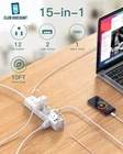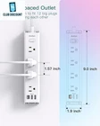 【15 IN 1 Power Strip】- 12 widely AC outlets power strips(1875W/15A Max)with 3 USB charing ports, the flat extension cord is 3 side design, every outlet is separated widely enough to fit 12 big plugs without blocking each other; The compact design power strip saving more space for your home, office, and college dorm room 【10 FT Long Extension Cord】 - This long power strip with 10ft is long enough to make it more flexible, flat plug design indoor extension cord with usb can fit easily in tight spaces, such as desk, nightstand; 45 degree right-angle create enough room makes this usb power strip flat plug does not obstruct other plugs, suitable for installing behind sofa, wardrobe, bookshelves, and other furniture 【3 Side Design & Widely Space】- Multi sided compact power strip with widely space fits large power adapters without blocking others, 3 USB Ports intelligently detect and charge the devices at the ideal output, like smartphone, tablet, camera, power bank, etc (USB Ports: 5V/2.4A each port, 3A in Total) 【Wall Mountable Power Strip】- Unique screw fixation design on both end allow this white power strip securely installed in various applications (4 screws included), This wall surge protector with usb can also be used as a desktop power strip or nightstand USB charging station without slipping off 【Multi Safety Protection with ON/OFF Switch】- The surge protector outlet with overload protection protects your electrical appliances from lighting, surges or spikes. This slim power strip has overload protection, short-circuit protection, over current protection, over-voltage protection and overheating protection. It will automatically cut power to protect connected devices when voltage surge is overwhelming. Product Description Addtam power strips - ALL IN ONE: 3 Side Design - the power strips with usb ports provide 12 widely ac outlets, 3 usb charging ports (including 1 usb c) 10FT Extension Cord - the surge protector power strip with 10 ft cord is more flexible and durable and has better current carrying capacity Unique Wall Mount Design - wall power strip can be installed anywhere, with the special design can fix more firmly. 12 Widely AC Outlets High-speed USB/USB C Ports 10ft Extension Cord Non-blocking 3 Sided Design ON/OFF Automatic Switch Specification Max Power: 1875W Rated Voltage: 125v Rated Current: 15A USB-C Output: 3A MAX USB-A Output: 2.4A MAX Surge Protector Power Strip Widely Spaced Outlets & 3 Side Design 12 widely spaced outlets with 3 sided non-blocking design, the Addtam power strip surge protector fits large power adapters without blocking others. 3 USB Ports intelligently detect and charge the devices at the ideal output, like smartphone, tablet, camera, power bank, etc (USB Ports: 5V 2.4A each port, 3A in Total) Long Power Strip & Wall Mount Surge Protector 10 feet heavy duty power cord provides sufficient length. A right angle plug with low profile fits easily behind furniture. Unique screw fixation design makes it easy for mounting to walls, desks or furniture. Screw Wall Mountable Design This wall mount power strip innovatively features keyhole mounting tabs on the two ends, which allows it to be securely installed on workbenches, wall mounts, behind tv, garage, bedside, under counters/desk/cabinet, dresser. Comes with 4 Screws. Wide Space Multi Plug Outlets 3 side design and 1.6 in instance between outlets will not block other big adapters, allow you charging your phone, laptop, computer, earphone, speakers same times. Surge Protector with USB Advanced built-in 1050 Joules surge protection energy rating to protect your home/office equipment such as tv, computer, printers, copiers, and routers from voltage fluctuations, surges, and spikes. Overload Protection This desktop power strip built-in overload protection. When the power overload, the integrated circuit breaker will trip off automatically to protect your devices. In this case, unplug the plugs and the shrapnel inside the switch will cool down, the outlet strip can recover. Plug in Anywhere Premium 10 ft flat braided cable adds additional durability and tangle free,makes it more flexible, offers a personalized, decorative touch to any home or office. Designed with a low-profile 45° flat plug which fits easily into hard-to-reach outlets tucked away behind your bed, sofa, or other furniture. Fireproof Material Fire-resistance PC shell with flame resistance at 1382℉ makes it more durable and longer lifetime. The desktop charging station with unique design provide ultimate convenience for your appliances and mobile devices, Featuring a USB-C port for charging compatible devices directly.