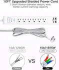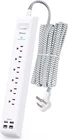 10-IN-1 Surge Protector Power Strip, USB Fast Charging Station: 6 AC Outlets 125V/15A/1875W, 2 USB-A Ports 5V/2.4A MAX, 2 USB-C Ports 5V/3A MAX, 4 USB Ports total 5V/3.1A output. Equipped with intelligent charging system, this power strip with surge protection can auto-detect and deliver the optimal charging speed for your electronic devices. 1080J Surge Protection with Overload Switch: Protect your devices from the damage of lightning strikes and sudden surges. The green LED indicator ON shows your devices are protected. At the same time, the overload protector switch will shut off automatically when the electrical circuit is abnormal to keep your devices safe. 45° Right Angled 0.35” Ultra Flat Plug: Maximum saving space and easily fits behind the furniture, non-blocking other outlets. 10 ft upgraded braided extension cord can meet most needs in your daily life, 1.5mm thicker diameter electric wire has a better current carrying capacity. 1382℉ FireProof Shell, Wall Mountable: The fire-resistant PC shell ensures utmost safety during the use process. There are two keyholes on the back of the power strip, so you can easily mount it on the wall or the desk. 24-Hour Free Customer Service & 1-Year Warranty: Please contact us if you meet any problem with our products, we will do our utmost to send you the solution. Product Description 10-IN-1 Surge Protector Power Strip USB Fast Charging Station 6 AC Outlets 125V/15A/1875W, 2 USB-A Ports 5V/2.4A MAX, 2 USB-C Ports 5V/3A MAX, 4 USB Ports total 5V/3.1A output. Equipped with intelligent charging system, this power strip with surge protection can auto-detect and deliver the optimal charging speed for your electronic devices. 1080J Surge Protection Protect your devices from the damage of lightning strikes and sudden surges The green LED indicator ON shows your devices are protected. 45° Right Angled 0.35” Ultra Flat Plug Maximum saving space and easily fits behind the furniture, non-blocking other outlets. 10 ft upgraded braided extension cord 10 ft upgraded braided extension cord can meet most needs in your daily life, 1.5mm thicker diameter electric wire has a better current carrying capacity. Overload Protection Switch the overload protector switch will shut off automatically when the electrical circuit is abnormal to keep your devices safe. 1382℉ FireProof Shell The fire-resistant PC shell ensures utmost safety during the use process. Wall Mountable There are two keyholes on the back of the power strip, so you can easily mount it on the wall or the desk. Compact Size You can bring this power strip with USB ports for travel.