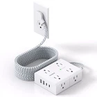 【12-in-1 Power Strip with USB Ports】One Beat 3-Side design surge protector power strip could turns 1 sockets into 8 widely outlets 4 USB Charging port, can power up to 12 devices simultaneously without a variety of converters. 2.2 inchces widely spaced in between outlets, larger than standard socket, fit big adapters without blocking each other. 【15 Ft Flat Extension Cord & Ultra Thin Flat Plug Power Strip】 The 15 Ft flat plug extension cord with multiple outlets, long enough to reach wall outlet sSockets, suitable for the home, office, and college dorm room essentials. With only 0.35 inch flat wall plug, this 15 ft power strip surge protector can infinitely close to the wall, hide in the back of furniture, bed or refrigerator, maximum save you space. The 45° right angle low profile flat plug design keeps anther outlet free. 【2 x USB C Charging Station】 Added dual USB C ports to meet different charging need, the power strip with USB C ports can charge up to 5V/3A. USB-A ports can charge up to 5V/2.4A Max, all USB outlets output is 5V/3.1A. With smart charging technology, the outlet extender can auto-detects your devices and reach faster charging efficiency, perfectly fit for your iphone, ipad, tablet, bluetooth earphone etc. 【1080J Surge Protector & On/Off Switch】This extension cord with the surge protection & overload protection protects your electrical appliances from lighting, surges or spikes. The minimum energy-absorbing capacity of 1080 Joules. The on and off switch can automatically shut off when the power exceeds rated value, to protect your expensive devices like computers, TV, etc. (The "Surge Protected” indicator light on to show your devices are protected) 【Multi Safety Protection】- RoHS, ETL Certificates. This multi plug outlet extender has overload protection, short-circuit protection, over current protection, over-voltage protection and overheating protection. Environmental protection and fire-resistance PC shell with flame retardant at 1382℉ makes it more durable and longer lifetime.