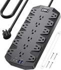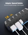Power for All: Equipped with 18 AC outlets, 2 USB-A ports, and 2 USB-C ports to gaming room or streaming, office desk, TV, phone, tablet, PC, laptop, and other devices simultaneously. Super-Spaced Outlets: The outlets are equipped with an extra-large space (1.5/1.8 inches) between them, accommodating the largest plugs or adapters. USB Chargers: Featuring 2 USB-A ports and 2 USB-C ports, making it easy to charge your devices without the need for additional chargers. (USB-A: 2.4A/12W, USB-C: 3A/15W, Total 3.4A/17W Shared) ALL-Round Safeguard: With surge protection units (TVS, MOV, GDT), it offers 8 functions, including surge protection, fire resistance, temperature control, ensuring safety for you and your devices. Easy Mountable: Back with 2 T-shaped mounting holes, package includes 4 screws and 1 drilling template for horizontal or vertical wall installation, preventing cord entanglement and overheating. 1,000 Days : SUPERDANNY offers free replacement of substandard power boards within 3 years. Buy with confidence, as we consistently provide product support. Product Description 1 Safety Protection 2 2100J Surge Protection 3 1875W Overload Protection 4 Top-Tier Material Power Strip with Spaced Outlets Provide a plug-and-play solution for bulky plugs and adapters of any size and shape. 14 AWG Heavy Duty Extension Cord Made of pure copper, capable of carrying high currents up to 15A. 45° Flat plug It can be easily installed behind furniture and still keep the furniture close to the wall. 1 Office Accessories 2 PC Accessories 3 Workshop Essentials 4 Home Equipment Mounting Kit Included 4 screws and 1 drill template make installing the power strip easy, ensuring a secure and stable mount in your chosen position. Status Indicators & Switch Three lights indicate the power strip's status: green for grounded, red for surge protection, and yellow for wiring fault. Anti-Slip Rubber Mats With the help of 4 anti-slip dots on the back, you can keep this power outlet stably put on the desk without leaving any scratch marks. Cable Management Use a reusable cable tie to neatly organize the 6.5 feet black extension cord with other device cords on the power strip, eliminating messy tangles. Specifications AC Output 110-240V, 50/60Hz, Max 15A USB Output USB-A:Max 2.4A/Port, USB-C: Max 3A/Port, Total 3.4A/17W Shared Rated Power 1875W in US/Canada, Max 3600W Worldwide Surge Protection 2100 Joules Product Size 11.77in * 5.24in * 1.18in Product Weight 1.85 lbs (838g) Cord Length 6.5 ft (2m) Cord Guage 15A 14AWG Plug Type 45° Angled Type B - 3 pin (North American)
