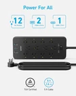 All the Power You Need: Features 12 AC outlets, 1 USB-C port, and 2 USB-A ports to give you everything you need to power up all of your appliances and mobile devices. Fast Charge Your iPhone: Use the 20W USB-C port to give your iPhone 13 a high-speed charge from 0-53% in just 30 minutes. 8-Point Safety System: Combines surge protection, fire resistance, overload protection, temperature control, and more to protect you and your devices. Optimized Layout: Designed with extra space between outlets to accommodate even the largest plugs. What You Get: Anker 351 Power Strip, 2 mounting screws, welcome guide, our worry-free 18-month warranty, lifetime* $200,000 connected equipment warranty, and friendly customer service. Product Description 20W USB-C Fast Charging Connect your iPhone 13 to the USB-C port to charge up to 53% in 30 minutes. Easy Wall Mounting Equipped with 2 keyhole mounting slots on the back, so you can easily mount the power strip to your wall. Space for Larger Plugs The outlets on the outer edges of the power strip are 1.5 in apart so you can plug in larger adapters with ease. Model Number: A9192 Anker 351 Power Strip Power All Your Essentials Huge Expansion Turn a single outlet into 12 AC outlets, 1 USB-C port, and 2 USB-A ports to power up a wide range of appliances and mobile devices. Power Your Mobile Devices: Use the 20W USB-C port to charge up your iPhone at high-speed, or use the 2 USB-A ports to power up your earbuds and other accessories. Superior Safety Our 8-Point Safety System safeguards your connected devices with a range of safety features including surge protection, grounded protection, fire resistance, and more. For Large and Small Plugs Some power bricks are so big that they can block other outlets, but not with Anker 351 Power Strip. We've added extra space between outlets to make room for all your plugs, both large and small. Specs USB-C and USB-A Output: USB-C: 5V 3A/9V 2.22A/12V 1.67A (20W max) USB-A: 5V 3A (2.4A max per port) 2 USB-A ports and 1 USB-C port share 5V 3A Dimensions: 24.5 × 10.6 × 2.6 cm Weight: 650.8 g Note: 1. 20W USB-C charging is only available when the 2 USB-A ports are not in use. 2. If you have a USB-A to Lightning or USB-A to MagSafe cable connected to the USB-A port, please disconnect and then reconnect the cable before charging. 3. The USB-A port does not support Quick Charge 3.0. Devices equipped with Quick Charge, such as the Galaxy series, will charge at regular speed. 4. Quick Charge and Power Delivery technologies are not supported on the USB-C port when using both ports simultaneously. 5. The USB ports of this product are not compatible with laptops. Series Series 3 Series 3 Series 3 Series 3 Series 6 Series 7 Worldwide Travel Yes (100-240V) Yes (100-240V) Yes (100-240V) Yes (100-240V) Yes (100-240V) Yes (100-240V) Number of Outlets 12 10 8 6 2 2 USB Charging Ports 2 USB-A + 1 USB-C 1 USB-A+1 USB-C 2 USB-A+1 USB-C 2 USB-A + 1 USB-C 1 USB-A + 2 USB-C 2 USB-A + 2 USB-C Compatible Devices Fast charging for phones / Fast charging for phones Fast charging for phones Fast charging for laptops, tablets and phones Fast charging for laptops, tablets and phones Scenario Office / Kitchen / Home Office / Kitchen / Home Office / Kitchen / Home Travel / Office / Home Travel / Office / Cruise Travel / Office / Home Surge Protection(Joules) Yes(2100J) Yes(2100J) Yes(2000J) Yes(300J) / / Cable Length 5 ft 6 ft 5 ft 5 ft 3 ft 5 ft Size / inches 9.65 x 4.13 x 1.02 10.63 x 3.54 x 1.02 4.49 x 3.66 x 1.57 4.92 x 2.2 x 2.2 4.69 x 2.32 x 1.83 6.38 x 3.11 x 0.71 Weight / oz 16.8 22.88 15.3 12.36 11.3 16.2