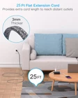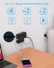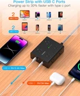 Surge Protector Power Strip 25 Ft Cord, Ultra Thin Flat Extension Cord with 8 4 【12-in-1 Power Strip with USB Ports】One Beat 3-Side design surge protector power strip could turns 1 sockets into 8 widely outlets 4 USB Charging port, can power up to 12 devices simultaneously without a variety of converters. 2.2 inchces widely spaced in between outlets, larger than standard socket, fit big adapters without blocking each other. 【25 Ft Flat Extension Cord & Ultra Thin Flat Plug Power Strip】 The 25 Ft flat plug extension cord with multiple outlets, long enough to reach wall outlet sSockets, suitable for the home, office, and college dorm room essentials. With only 0.35 inch flat wall plug, this 25 ft power strip surge protector can infinitely close to the wall, hide in the back of furniture, bed or refrigerator, maximum save you space. The 45° right angle low profile flat plug design keeps anther outlet free. 【2 x USB C Charging Station】 Added dual USB C ports to meet different charging need, the power strip with USB C ports can charge up to 5V/3A. USB-A ports can charge up to 5V/2.4A Max, all USB outlets output is 5V/3.1A. With smart charging technology, the outlet extender can auto-detects your devices and reach faster charging efficiency, perfectly fit for your iphone, ipad, tablet, bluetooth earphone etc. 【1080J Surge Protector & On/Off Switch】This extension cord with the surge protection & overload protection protects your electrical appliances from lighting, surges or spikes. The minimum energy-absorbing capacity of 1080 Joules. The on and off switch can automatically shut off when the power exceeds rated value, to protect your expensive devices like computers, TV, etc. (The "Surge Protected” indicator light on to show your devices are protected) 【Multi Safety Protection】- RoHS, ETL Certificates. This multi plug outlet extender has overload protection, short-circuit protection, over current protection, over-voltage protection and overheating protection. Environmental protection and fire-resistance PC shell with flame retardant at 1382℉ makes it more durable and longer lifetime.