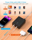 【12-in-1 Power Strip with USB Ports】3-Side design surge protector power strip could turns 1 sockets into 8 widely outlets 4 USB Charging port, can power up to 12 devices simultaneously without a variety of converters. 2.2 inchces widely spaced in between outlets, larger than standard socket, fit big adapters without blocking each other. 【25 Ft Flat Extension Cord & Ultra Thin Flat Plug Power Strip】 The 25 Ft flat plug extension cord with multiple outlets, long enough to reach wall outlet sSockets, suitable for the home, office, and college dorm room essentials. With only 0.35 inch flat wall plug, this 25 ft power strip surge protector can infinitely close to the wall, hide in the back of furniture, bed or refrigerator, maximum save you space. The 45° right angle low profile flat plug design keeps anther outlet free. 【2 x USB C Charging Station】 Added dual USB C ports to meet different charging need, the power strip with USB C ports can charge up to 5V/3A. USB-A ports can charge up to 5V/2.4A Max, all USB outlets output is 5V/3.1A. With smart charging technology, the outlet extender can auto-detects your devices and reach faster charging efficiency, perfectly fit for your iphone, ipad, tablet, bluetooth earphone etc. 【1080J Surge Protector & On/Off Switch】This extension cord with the surge protection & overload protection protects your electrical appliances from lighting, surges or spikes. The minimum energy-absorbing capacity of 1080 Joules. The on and off switch can automatically shut off when the power exceeds rated value, to protect your expensive devices like computers, TV, etc. (The "Surge Protected” indicator light on to show your devices are protected) 【Multi Safety Protection】- RoHS, ETL Certificates. This multi plug outlet extender has overload protection, short-circuit protection, over current protection, over-voltage protection and overheating protection. Environmental protection and fire-resistance PC shell with flame retardant at 1382℉ makes it more durable and longer lifetime.