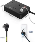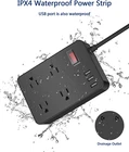 USE INDOORS OR OUTDOORS: The Jgstkcity 120V Weatherproof Power Strip and Surge Protector includes 4 outlets and 3 USB ports for safe, dependable, and fast charging of your electronic devices in your home, garage, or yard in any weather. WATER-RESISTANT & SPLASH-PROOF: Rated IPX4, this electric shock-proof multi-outlet power strip works well in both humid and rainy conditions. Use it safely in a bathroom, near a pool or outdoor shower, on your deck or patio, while camping, or to power your Christmas lights. OVERLOAD PROTECTION: The Jgstkcity outdoor outlet strip can withstand up to 1,700 joules of energy. Designed to protect against the most powerful of surges, it is constructed of fire-resistant polycarbonate with a built-in circuit breaker that shuts down when the power exceeds the recommended limit. SAFETY SHUTOFF: Reduce electricity consumption when not in use and protect curious toddlers and kids from electric shock. The panel includes a safety switch with red indicator light. Flick the switch to turn all the outlets on or off. WALL-MOUNTABLE: With four keyhole slots and a 6-foot extension cord, it is easy to hang on the power strip on a wall or panel for accessibility. Product Description Jgstkcity Flat Plug Outdoor Power Strip Surge Protector Weatherproof Most standard outlets only have two sockets, and many homes are limited to only two exterior outlets. The JGSTKCITY 120V Weatherproof Power Strip has four (4) power outlets and three (3) USB ports so you can plug in and charge multiple electronic devices, outdoor appliances, tools, or decorative garden lights into one source outside. This surge protector is perfect for outdoor parties, picnics, or camping too. Its IPX4 waterproof technology prevents short-circuits and electric shock caused by precipitation from rain or snow with a splash-proof design that allows water to flow through drainage holes in the back. The four widely spaced power sockets fit four Standard US 2 and 3 prong plugs. This waterproof power strip and USB hub has been tested to set safety standards to meet ETL Certification with an overload protection of up to 1700 joules. Power your outdoor devices and electrical appliances safely and securely year-round with this 120V Weatherproof Power Strip from JGSTKCITY. OVERLOAD PROTECTION The Jgstkcity outdoor outlet strip can withstand up to 1,700 joules of energy. Designed to protect against the most powerful of surges, it is constructed of fire-resistant polycarbonate with a built-in circuit breaker that shuts down when the power exceeds the recommended limit. WALL-MOUNTABLE With 4 keyhole slots, it is easy to hang on the power strip on a wall or panel for accessibility. 45° Angled Flat Plug 45 degree flug plug design doesn’t block the bottom receptacle of your duplex wall outlet. AC outlets 4 AC outlets 6 AC outlets 4 AC outlets 6 AC outlets USB-C Port ✓ ✓