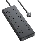 【16-IN-1 Power Strip】This power strip surge protector features 12 AC outlets, 3 USB-A ports (5V/2.4A Max each port) and 1 USB-C port (5V/3A Max), which could charge up to 16 devices simultaneously. Ideal for home theater, office, room accessories. Max. power: 1875W(125V~15A). 【12 Widely-Spaced Outlets】The wide spacing and different orientation of 12 outlets gives plenty of options for odd-shaped wall-warts and transformers, making this surge protector power strip can better fit diverse using needs. Easily plug in your your desktop computer, laptop, TV, desk lamp and more. 【Flat Plug Power Strip】The 0.55in flat plug design is great for stashing under or behind furniture, slimmer enough to plug in tight place. The 45° angled plug design makes sure there is ample room for the second outlet. Made of 14AWG pure copper, the 5ft extension cord is heavy duty and has better carrying capacity (15A). 【Desk Power Strip】This power strip with usb ports comes with 4 nice grippy bottoms, which enables this usb power strip to firmly sit on the desk or floor. Besides, two mounting holes on the reverse side allow you securely mount this black power strip on the wall, under desk and workbench. 【Safe and Certificated】This power strip flat plug is ETL listed and made of the top-grade UL94 V-0 flame-retardant material. With 4000 Joules surge protection, this heavy duty power strip safeguards the devices plugged into from overload, short circuit, and voltage fluctuations, creating peace of mind.