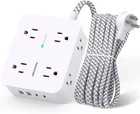 About this item 【12 IN 1 Power Strip & 2.2 IN Wide Space】- 3-side design power strip surge protector with 8AC widely outlets and 4 USB (2 USB C) charging ports can power up to 12 devices simultaneously. That makes it easier to make the plugs not covering any outlet, and the 2.2 inchces widely spced in between outlets, larger than standard socket, fit big adapters without blocking each other. The compact design saves more space, suitable for the home, office, and college dorm room essentials 【2 x USB C Power Strip】- Added extra 2 USB C ports for your devices, the USB C port can charge up to 5V/3A. USB-A ports can charge up to 5V/2.4A Max, all USB Ports Output is 5V/3.1A, 15.5W max which is 30% faster than other usb c charging station. With smart charging technology, it can auto-detects your devices and can reach faster charging efficiency, perfectly fit for your iphone, ipad, tablet etc 【Overload Surge Protection】- The surge protector power strip with overload protection protects your electrical appliances from lighting, surges or spikes. The minimum energy-absorbing capacity of 1080 Joules. Lighted on/off switch with integrated circuit breaker for overload protection of all outlets.(The "Surge Protected” indicator light on to show your devices are protected) 【Wall Mountable Extension Cord with Flat Plug】- The low-profile flat plug fits easily in tight spaces; and the right angle flat plug design prevents bottom plug blocking; the 5ft upgraded braided extension cord is very thick and has better current carrying capacity; the two mounting holes on back allows this power strip to be securely installed in various applications 【Multi Safety Protection】- RoHS, ETL Certificates. This power strip has overload protection, short-circuit protection, over current protection, over-voltage protection and overheating protection. It will automatically cut power to protect connected devices when voltage surge is overwhelming. Environmental protection and fire-resistance PC shell with flame retardant at 1382℉ makes it more durable and longer lifetime.