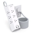 【13 in 1 Power Strip】- The 3-Side design power strip with 9AC widely outlets(15A/1875W) and 4 USB charging ports can power up to 13 devices simultaneously, saving your space and make your desktop organized. Suitable for the home, office, and college dorm room essentials 【Ultra Slim Flat Plug Power Strip】- With only 0.35 inch ultra thin plug and 45° right angle design, the flat plug power strip is much thinner than traditional plugs, which can close to the wall easily, and hide in the back of furniture, bed or refrigerator, and the right angle flat plug design prevents bottom plug blocking 【2 x USB C Charging Station】- Added extra 2 USB C ports for your devices, the power strip with USB C port can charge up to 5V/3A. USB-A ports can charge up to 5V/2.4A Max. With smart charging technology, the outlet extender can auto-detect your devices and can reach faster charging efficiency, perfectly fit for your iPhone, iPad, tablet, bluetooth earphone etc 【Easy Mount on Wall and Desk 】- No need to measure and guess where you had to attach screws, mountable power strip with unique screw fixation design on both ends, allowing this white extension cord securely installed in various applications (4 screws included). It is easy to mount to walls, desks or furniture 【Overload Surge Protection】- 3 complementary surge protection circuits(TVS MOV GDT) with the minimum energy-absorbing capacity of 900 Joules. Overload protection ON/OFF switch can shutoff automatically to keeps your device safe. This flat power strip is also protected against over-voltage, over-current, over-charge, short-circuiting