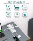 【13 in 1 Power Strip】- The 3-Side design power strip with 9AC widely outlets(15A/1875W) and 4 USB charging ports can power up to 13 devices simultaneously, saving your space and make your desktop organized. Suitable for the home, office, and college dorm room essentials 【Ultra Slim Flat Plug Power Strip】- With only 0.35 inch ultra thin plug and 45° right angle design, the flat plug power strip is much thinner than traditional plugs, which can close to the wall easily, and hide in the back of furniture, bed or refrigerator, and the right angle flat plug design prevents bottom plug blocking 【2 x USB C Charging Station】- Added extra 2 USB C ports for your devices, the power strip with USB C port can charge up to 5V/3A. USB-A ports can charge up to 5V/2.4A Max. With smart charging technology, the outlet extender can auto-detect your devices and can reach faster charging efficiency, perfectly fit for your iPhone, iPad, tablet, bluetooth earphone etc 【Easy Mount on Wall and Desk 】- No need to measure and guess where you had to attach screws, mountable power strip with unique screw fixation design on both ends, allowing this white extension cord securely installed in various applications (4 screws included). It is easy to mount to walls, desks or furniture 【Overload Surge Protection】- 3 complementary surge protection circuits(TVS MOV GDT) with the minimum energy-absorbing capacity of 900 Joules. Overload protection ON/OFF switch can shutoff automatically to keeps your device safe. This flat power strip is also protected against over-voltage, over-current, over-charge, short-circuiting