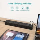 Surge Protector Power Strip with Extension Cord 【16-IN-1 Surge Protector Power Strip】 - This USB Fast Charging Station has 12 AC outlets (including 6 3-prong Outlets & 6 2-prong Outlets) and 4 USB(2 USB-A & 2 USB-C) ports. This power strip with surge protection can auto-detect and deliver the optimal charging speed for your electronic devices. 【Power Strip with USB】- This power strip with USB ports with 2 USB C features 5V/3A(15W) and 2 USB A features 5V/2.4A(12W). With smart charging technology, the USB power strip can auto-detect your devices and reach faster charging efficiency, perfectly fit for your iPhone 15, iPad, tablet, Bluetooth earphone, etc. 【Multi Safety Protection with ON/OFF Switch】- This power strips with surge protection (1500J), overload protection, short-circuit protection, over-current protection, short-circuit protection, and 1382℉ fireproof shell to help keep your devices safe. The green LED indicator ON shows your devices are protected. The on/ off switch can automatically shut off when the power exceeds the rated value (1250W), to protect your expensive devices. 【5Ft Flag Plug Extension Cord & Wall Mountable】The 45°flat plug will not block the bottom receptacle of your duplex wall outlet, making it effortless to plug and unplug devices even in tight spaces. Featuring mounting holes on the back and comes with installation hole stickers, setting up your multiple outlets on the wall is a breeze. 【】Have questions or need assistance? us anytime, we'll respond within 24 hours. We offer guarantees that you'll enjoy worry-free use for an extended period.