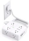 【12-in-1 Power Strip with USB Ports】One Beat 3-Side design surge protector power strip could turns 1 sockets into 8 widely outlets 4 USB Charging port, can power up to 12 devices simultaneously without a variety of converters. 2.2 inchces widely spaced in between outlets, larger than standard socket, fit big adapters without blocking each other. 【Ultra Thin Flat Plug Power Strip & Flat Extension Cord】 With only 0.35 inch flat wall plug, this power strip surge protector can infinitely close to the wall, hide in the back of furniture, bed or refrigerator, maximum save you space. The 45° right angle low profile flat plug design keeps anther outlet free. The 5 Ft flat plug extension cord with multiple outlets can be stable on your desktop, nightstand or wall mount, suitable for the home, office, and college dorm room essentials. 【2 x USB C Charging Station】 Added dual USB C ports to meet different charging need, the power strip with USB C port can charge up to 5V/3A. USB-A ports can charge up to 5V/2.4A Max, all USB outlets output is 5V/3.1A. With smart charging technology, the outlet extender can auto-detects your devices and reach faster charging efficiency, perfectly fit for your iphone, ipad, tablet, bluetooth earphone etc. 【1080J Surge Protector & Multiple Safety Protection】This extension cord with the surge protection & overload protection protects your electrical appliances from lighting, surges or spikes. The minimum energy-absorbing capacity of 1080 Joules. The on and off switch can automatically shut off when the power exceeds rated value, to protect your expensive devices like computers, TV, etc. (The "Surge Protected” indicator light on to show your devices are protected) 【Multi Safety Protection】- RoHS, ETL Certificates. This multi plug outlets has overload protection, short-circuit protection, over current protection, over-voltage protection and overheating protection. Environmental protection and fire-resistance PC shell with flame retardant at 1382℉ makes it more durable and longer lifetime.