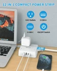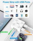 【8 Widely AC Outlets & 4 USB Ports】Equipped with 8 widely spaced AC outlets(100-240V, 15A/1875W) and 4 USB ports(Total 5V/3.4A), can charge 12 devices simultaneously without blocking, Ideal for charging multi devices such as laptop, cellphone, TV, printer, hair dryer and other kitchen appliance 【Slim Flat Plug Power Strip】With a slim 0.3" design flat plug, it is designed to maximize space saving. This low-profile flat wall plug can be easily installed behind sofas, beds, desks, and closets close to the wall, 45 degree right angle design will not affect other outlets 【Flat Extension Cord】This 5ft ultra-thin flat extension cord is sturdy quality three-wire cord with good shielding, much thinner than standard round cables, only 0.15in thick, allowing it to run smoothly under carpets and through door gaps. The soft slim design ensures maximum flexibility and easy access to power wherever you need it 【Power Strip with USB】Dual USB A ports features 2.4A, extra 2 USB C port features 3A, with smart charging technology, 2 types of USB ports can auto-detect charged devices and deliver optimal charging speed, perfectly fit for your iphone, ipad, teblet, bluetooth earphone etc 【Surge Protector Power Strip】Power strip surge protector boasts multiple safety protections, including 1700J surge protection, overload protection, short circuit protection, and has passed the FCC, protecting your electrical appliances from lightning, surges and spikes at home, office dorm etc 【Wall Plug Design and Non-Slip Mats】The bottom is designed with hanging holes and non-slip mats, 2 hanging holes to install the plug on the wall, and 4 rubber non-slip mats to keep the socket on the smooth desktop, a must-have accessory for college dorm room, home, office, bedroom, kitchen, tool room, etc