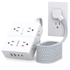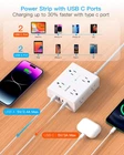 Surge Protector Power Strip, Flat Extension Cord with 8 Outlets 4 USB Ports(2 USB C), Flat Plug Power Strip for Home, Office, Dorm Room Essentials, Wall Plug Outlet Extender, 1080 J, 3 Side Widely Spaced AC Outlets 【12-in-1 Power Strip with USB Ports】3-Side design surge protector power strip could turns 1 sockets into 8 widely outlets 4 USB Charging port, can power up to 12 devices simultaneously without a variety of converters. 2.2 inchces widely spaced in between outlets, larger than standard socket, fit big adapters without blocking each other. 【6 Feet Flat Extension Cord & Ultra Thin Flat Plug Power Strip】 The flat plug extension cord with multiple outlets, 6 feet long power strip enough to reach wall outlet sockets, suitable for the home, office, and college dorm room essentials. With only 0.35 inch flat wall plug, this power strip surge protector can infinitely close to the wall, hide in the back of furniture, bed or refrigerator, maximum save you space. The 45° right angle low profile flat plug design keeps anther outlet free. 【2 x USB C Charging Station】 Added dual USB C ports to meet different charging need, the power strip with USB C ports can charge up to 5V/3A. USB-A ports can charge up to 5V/2.4A Max, all USB outlets output is 5V/3.1A. With smart charging technology, the outlet extender can auto-detects your devices and reach faster charging efficiency, perfectly fit for your iphone, ipad, tablet, bluetooth earphone etc. 【1080J Flat Surge Protector & On/Off Switch】This braided extension cord with the surge protection & overload protection protects your electrical appliances from lighting, surges or spikes. The minimum energy-absorbing capacity of 1080 Joules. The on and off switch can automatically shut off when the power exceeds rated value, to protect your expensive devices like computers, TV, etc. (The "Surge Protected” indicator light on to show your devices are protected) 【Multi Safety Protection】- RoHS, ETL Certificates. This multi plug outlet extender has overload protection, short-circuit protection, over current protection, over-voltage protection and overheating protection. Environmental protection and fire-resistance PC shell with flame retardant at 1382℉ makes it more durable and longer lifetime.