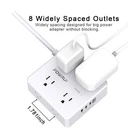 Surge Protector Power Strip - 6 Ft Flat Plug Extension Cord with 8 Widely Outlets and 4 USB Ports(1 USB C), 3 Side Outlet Extender for Home Office, White, ETL Listed Product Details Size: 6 Ft Brand: POWRUI MPN: AHR-803B UPC: Does not apply EAN: Does not apply Brand: POWRUI Color: White Voltage: 125 Volts Special Feature: Compact Total USB Ports: 4 Package Dimensions: 5.98 x 5.83 x 1.81 inches Item Weight: 11.7 ounces Item model number: AHR-803B Date First Available: April 19, 2022 Manufacturer: POWRUI Country of Origin: China 8 Outlets Power Strip with 4 USB Ports- The 3-side power strip with 8AC widely outlets and 4 USB charging ports total 4.2A, each USB A port features 5V/2.4A Max output. USB C charging port features 5V/3A MAX. can power up to 12 devices simultaneously.Wide range voltage design, can be used on 120v to 240v circuit. Surge Protector Power Strip with 3 Side Design & Wide Space- 3-side design that makes it easier to make the plugs not covering any outlet, and the 8 AC outlets with 1.78 inches long space in between, larger than standard 1.5-inch socket. Larger spacing makes it easier to use for all kinds of equipment.The compact design saves more space, suitable for the home, office, and college dorm room. 6 Ft extension cord with Flat Plug and Cable Ties- 6 Feet Right Angled Flat Plug power cord makes it more flexible ,Reusable Fastening Cable Ties Can tie up the unused cord and make it better organized. he two mounting holes on back allows this power strip to be securely installed in various applications. Multi Safety Protection- RoHS, FCC and ETL Certificates. This power strip has overload protection, short-circuit protection, over current protection, over-voltage protection and overheating protection. The surge protector with overload protection protects your electrical appliances from lighting, surges or spikes. The minimum energy-absorbing capacity of 600 Joules. It will automatically cut power to protect connected devices when voltage surge is overwhelming. Our After Sale Service - ETL Certificates. Our friendly and reliable customer service will respond to you within 24 hours. You can purchase with confidence, with our 30-day return and 12-month replacement .
