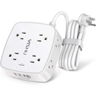 Specifications: Input Voltage: 100-240VAC; 60HZ Max.Current: 10A Max.Power Rating: 1250W USB Port Output: DC 5V, Total 4.2A Cord Length: 6 Ft; Item Dimensions: 4.33*4.05*1.65 in; Package list: 1 x Power Strip with usb Port 1 x Instruction manual 1 x Paper Box Notice: Do not exceed the total rating or it may cause damage to the unit and fire hazards 【4+4 Outlets Power Strip with 4 USB Ports】- The 3-side power strip with 8AC widely outlets and 4 USB charging ports total 4.2A, each USB A port features 5V/2.4A Max output. USB C charging port features 5V/3A MAX. can power up to 12 devices simultaneously.Wide range voltage design, can be used on 120v to 240v circuit. 【Surge Protector Power Strip with 3 Side Design & Wide Space】- 3-side design that makes it easier to make the plugs not covering any outlet, and the 8 AC outlets with 1.8 inches long space in between, larger than standard 1.5-inch socket. Larger spacing makes it easier to use for all kinds of equipment.The compact design saves more space, suitable for the home, office, and college dorm room. 【Multi Safety Protection】- RoHS, FCC and ETL Certificates. This power strip has overload protection, short-circuit protection, over current protection, over-voltage protection and overheating protection. The surge protector with overload protection protects your electrical appliances from lighting, surges or spikes. The minimum energy-absorbing capacity of 600 Joules. It will automatically cut power to protect connected devices when voltage surge is overwhelming. 【6 Ft extension cord with Flat Plug and Cable Ties】- 6 Feet Right Angled Flat Plug power cord makes it more flexible ,Reusable Fastening Cable Ties Can tie up the unused cord and make it better organized. he two mounting holes on back allows this power strip to be securely installed in various applications. 【 Our After Sale Service 】- RoHS, FCC and ETL Certificates. Our friendly and reliable customer service will respond to you within 24 hours. You can purchase with confidence, with our 30-day return and 12-month replacement.