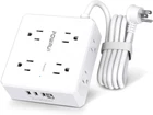 【8 Outlets Power Strip with 4 USB Ports】- The 3-side power strip with 8AC widely outlets and 4 USB charging ports total 4.2A, each USB A port features 5V/2.4A Max output. USB C charging port features 5V/3A MAX. can power up to 12 devices simultaneously.Wide range voltage design, can be used on 120v to 240v circuit. 【Surge Protector Power Strip with 3 Side Design & Wide Space】- 3-side design that makes it easier to make the plugs not covering any outlet, and the 8 AC outlets with 1.78 inches long space in between, larger than standard 1.5-inch socket. Larger spacing makes it easier to use for all kinds of equipment.The compact design saves more space, suitable for the home, office, and college dorm room. 【6 Ft extension cord with Flat Plug and Cable Ties】- 6 Feet Right Angled Flat Plug power cord makes it more flexible ,Reusable Fastening Cable Ties Can tie up the unused cord and make it better organized. he two mounting holes on back allows this power strip to be securely installed in various applications. 【Multi Safety Protection】- RoHS, FCC and ETL Certificates. This power strip has overload protection, short-circuit protection, over current protection, over-voltage protection and overheating protection. The surge protector with overload protection protects your electrical appliances from lighting, surges or spikes. The minimum energy-absorbing capacity of 900 Joules. It will automatically cut power to protect connected devices when voltage surge is overwhelming. 【 Our After Sale Service 】- ETL Certificates. Our friendly and reliable customer service will respond to you within 24 hours. You can purchase with confidence, with our 30-day return and 12-month replacement . Product Description POWRUI 6 Feet Extension Cord Power Strip with 8 Surge Protector Widely Outlets and 3U1C Ports Power Strip with 8AC Outlets & 4USB Charging Ports Power Strip & Surge Protector Specialist Specification: Input Voltage: 100-240VAC; 60HZ Max.Current: 10A Max.Power Rating: 1250W USB Port Output: DC 5V, Total 4.2A Cord Length: 6 Ft Surge Protector Rating: 900 Joules POWRUI Power Strip Surge Protector with 6 FT Flat Plug Extension Cord 900 Joules Surge Pretector Power Strip with 8 Outlets and 4 USB charging ports The 3-side design that makes it easier to make the plugs not covering any outlet, and the 8 AC outlets with 1.78 inches long space in between, larger than standard 1.5-inch socket. Larger spacing makes it easier to use for all kinds of equipment. 3USB A charging ports and 1USB C charging Port total 4.2A, each USB A port features 5V/2.4A Max output. USB C charging port features 5V/3A MAX. Can power up to 12 devices simultaneously.Wide range voltage design, can be used on 120v to 240v circuit. 8 Widely Surge Protector Outlets 3 USB A Ports & 1 USB C Port 3-Side Design Power Strip 6FT Heavy Duty power extension cord Multi Safety Protection 3 USB A Ports & 1 USB C Port The USB port can provide charging for most USB devices, Each USB A port features 5V/2.4A Max output. USB C charging port features 5V/3A MAX. 3 Side Outlet Extender With USB Ports The 3-side power strip with 8AC widely outlets and 4 USB charging ports can fit for larger adapters without blocking each other. The compact design saves more space, suitable for the home, office, and college dorm room. 3 USB A Ports & 1 USB C Port 3 USB A Ports & 1 USB C Port total 4.2A, each USB A port features 5V/2.4A Max output. USB C charging port features 5V/3A MAX. Larger spacing Outlet The AC outlets with 1.78 inches long space in between, larger than standard 1.5-inch socket. Larger spacing makes it easier to use for all kinds of equipment. Multi Safety Protection The surge protector with overload protection protects your electrical appliances from lighting, surges or spikes. The minimum energy-absorbing capacity of 900 Joules. It will automatically cut power to protect connected devices when voltage surge is overwhelming. 900 JOULES SURGE PROTECTION The surge protector with overload protection protects your electrical appliances from lighting, surges or spikes. The minimum energy-absorbing capacity of 900 Joules. 45° Flat Plug design The 45° flat plug design makes the device more convenient to use and will not affect the use of other devices while using this product. 1382°F Flame-Retardant Materials Shell 1382 ° F flame retardant material housing can effectively prevent the occurrence of fire, to ensure the safety, tips. For your safety, do not exceed the product's power rating of 1250W when using the device, otherwise it may cause damage to your device! 6 Ft Extension Cord with Cable Tie The thicker Copper Wires for stronger, high conductivity, more efficient power output, low heat & safer. 6 Feet Right Angled Flat Plug power cord makes it more flexible ,Reusable Fastening Cable Ties Can tie up the unused cord and make it better organized. Mounting Hole Mounting Method 1. Measure the distance between the 2 keyhole slots with the same direction on the back of the power strip. 2. Punch 2 holes on the baseboard with the distance you just measured and insert two self-tapping screws. 3. Put the power strip into the screws and then pull it down a little bit. Please ensure that the screws slide into the smaller holes.