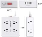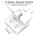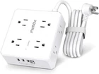 Surge Protector Power Strip - 6 Ft Flat Plug Extension Cord with 8 Widely Outlets and 4 USB Ports(1 USB C), 3 Side Outlet Extender for Home Office, White, ETL Listed Color White Total Power Outlets 8 Voltage 125 Volts Special Feature Overload Protection, Surge Protection, Mountable, Usb Slot, Fireproof About this item 【8 Outlets Power Strip with 4 USB Ports】- The 3-side power strip with 8AC widely outlets and 4 USB charging ports total 4.2A, each USB A port features 5V/2.4A Max output. USB C charging port features 5V/3A MAX. can power up to 12 devices simultaneously.Wide range voltage design, can be used on 120v to 240v circuit. 【Surge Protector Power Strip with 3 Side Design & Wide Space】- 3-side design that makes it easier to make the plugs not covering any outlet, and the 8 AC outlets with 1.78 inches long space in between, larger than standard 1.5-inch socket. Larger spacing makes it easier to use for all kinds of equipment.The compact design saves more space, suitable for the home, office, and college dorm room. 【6 Ft extension cord with Flat Plug and Cable Ties】- 6 Feet Right Angled Flat Plug power cord makes it more flexible ,Reusable Fastening Cable Ties Can tie up the unused cord and make it better organized. he two mounting holes on back allows this power strip to be securely installed in various applications. 【Multi Safety Protection】- RoHS, FCC and ETL Certificates. This power strip has overload protection, short-circuit protection, over current protection, over-voltage protection and overheating protection. The surge protector with overload protection protects your electrical appliances from lighting, surges or spikes. The minimum energy-absorbing capacity of 600 Joules. It will automatically cut power to protect connected devices when voltage surge is overwhelming. 【 Our After Sale Service 】- ETL Certificates. Our friendly and reliable customer service will respond to you within 24 hours. You can purchase with confidence, with our 30-day return and 12-month replacement .