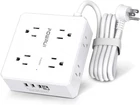 Store New Arrivals Add to Favorite View Feedback Contact Surge Protector Power Strip - 6 Ft Flat Plug Extension Cord with 8 Widely Outlets and 4 USB Ports(1 USB C), 3 Side Outlet Extender for Home Office, White, ETL Listed Description Item model number AHR-803B Color White Product Dimensions 4.33 x 4.05 x 0.04 inches Country of Origin China Item Weight 10.6 ounces Total Power Outlets 8 Voltage 125 Volts Manufacturer POWRUI Special Feature Overload Protection, Surge Protection, Mountable, Usb Slot, Fireproof Brand POWRUI Size 6 Ft 【8 Outlets Power Strip with 4 USB Ports】- The 3-side power strip with 8AC widely outlets and 4 USB charging ports total 4.2A, each USB A port features 5V/2.4A Max output. USB C charging port features 5V/3A MAX. can power up to 12 devices simultaneously.Wide range voltage design, can be used on 120v to 240v circuit. 【Surge Protector Power Strip with 3 Side Design & Wide Space】- 3-side design that makes it easier to make the plugs not covering any outlet, and the 8 AC outlets with 1.78 inches long space in between, larger than standard 1.5-inch socket. Larger spacing makes it easier to use for all kinds of equipment.The compact design saves more space, suitable for the home, office, and college dorm room. 【6 Ft extension cord with Flat Plug and Cable Ties】- 6 Feet Right Angled Flat Plug power cord makes it more flexible ,Reusable Fastening Cable Ties Can tie up the unused cord and make it better organized. he two mounting holes on back allows this power strip to be securely installed in various applications. 【Multi Safety Protection】- RoHS, FCC and ETL Certificates. This power strip has overload protection, short-circuit protection, over current protection, over-voltage protection and overheating protection. The surge protector with overload protection protects your electrical appliances from lighting, surges or spikes. The minimum energy-absorbing capacity of 900 Joules. It will automatically cut power to protect connected devices when voltage surge is overwhelming. 【 Our After Sale Service 】- ETL Certificates. Our friendly and reliable customer service will respond to you within 24 hours. You can purchase with confidence, with our 30-day return and 12-month replacement . Product Description POWRUI 6 Feet Extension Cord Power Strip with 8 Surge Protector Widely Outlets and 3U1C Ports Power Strip with 8AC Outlets & 4USB Charging Ports Power Strip & Surge Protector Specialist Specification: Input Voltage: 100-240VAC; 60HZ Max.Current: 10A Max.Power Rating: 1250W USB Port Output: DC 5V, Total 4.2A Cord Length: 6 Ft Surge Protector Rating: 900 Joules POWRUI Power Strip Surge Protector with 6 FT Flat Plug Extension Cord 900 Joules Surge Pretector Power Strip with 8 Outlets and 4 USB charging ports The 3-side design that makes it easier to make the plugs not covering any outlet, and the 8 AC outlets with 1.78 inches long space in between, larger than standard 1.5-inch socket. Larger spacing makes it easier to use for all kinds of equipment. 3USB A charging ports and 1USB C charging Port total 4.2A, each USB A port features 5V/2.4A Max output. USB C charging port features 5V/3A MAX. Can power up to 12 devices simultaneously.Wide range voltage design, can be used on 120v to 240v circuit. 8 Widely Surge Protector Outlets 3 USB A Ports & 1 USB C Port 3-Side Design Power Strip 6FT Heavy Duty power extension cord Multi Safety Protection 3 USB A Ports & 1 USB C Port The USB port can provide charging for most USB devices, Each USB A port features 5V/2.4A Max output. USB C charging port features 5V/3A MAX. 3 Side Outlet Extender With USB Ports The 3-side power strip with 8AC widely outlets and 4 USB charging ports can fit for larger adapters without blocking each other. The compact design saves more space, suitable for the home, office, and college dorm room. 3 USB A Ports & 1 USB C Port 3 USB A Ports & 1 USB C Port total 4.2A, each USB A port features 5V/2.4A Max output. USB C charging port features 5V/3A MAX. Larger spacing Outlet The AC outlets with 1.78 inches long space in between, larger than standard 1.5-inch socket. Larger spacing makes it easier to use for all kinds of equipment. Multi Safety Protection The surge protector with overload protection protects your electrical appliances from lighting, surges or spikes. The minimum energy-absorbing capacity of 900 Joules. It will automatically cut power to protect connected devices when voltage surge is overwhelming. 900 JOULES SURGE PROTECTION The surge protector with overload protection protects your electrical appliances from lighting, surges or spikes. The minimum energy-absorbing capacity of 900 Joules. 45° Flat Plug design The 45° flat plug design makes the device more convenient to use and will not affect the use of other devices while using this product. 1382°F Flame-Retardant Materials Shell 1382 ° F flame retardant material housing can effectively prevent the occurrence of fire, to ensure the safety, tips. For your safety, do not exceed the product's power rating of 1250W when using the device, otherwise it may cause damage to your device! 6 Ft Extension Cord with Cable Tie The thicker Copper Wires for stronger, high conductivity, more efficient power output, low heat & safer. 6 Feet Right Angled Flat Plug power cord makes it more flexible ,Reusable Fastening Cable Ties Can tie up the unused cord and make it better organized. Mounting Hole Mounting Method 1. Measure the distance between the 2 keyhole slots with the same direction on the back of the power strip. 2. Punch 2 holes on the baseboard with the distance you just measured and insert two self-tapping screws. 3. Put the power strip into the screws and then pull it down a little bit. Please ensure that the screws slide into the smaller holes. ABOUT US We offer the best prices around on high quality products. Our E-store includes media such as books, movies, music and games while offering electronics, toys, sporting apparel, clothing, t