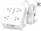 Surge Protector Power Strip - 6 Ft Flat Plug Extension Cord with 8 Widely Outlet Description: 8 Outlets Power Strip with 4 USB Ports: The 3-side power strip with 8AC widely outlets and 4 USB charging ports total 4.2A, each USB A port features 5V/2.4A Max output. USB C charging port features 5V/3A MAX. can power up to 12 devices simultaneously. Wide range voltage design, can be used on 120v to 240v circuit. Surge Protector Power Strip with 3 Side Design & Wide Space: 3-side design that makes it easier to make the plugs not covering any outlet, and the 8 AC outlets with 1.78 inches long space in between, larger than standard 1.5-inch socket. Larger spacing makes it easier to use for all kinds of equipment. The compact design saves more space, suitable for the home, office, and college dorm room. 6 Ft extension cord with Flat Plug and Cable Ties: 6 Feet Right Angled Flat Plug power cord makes it more flexible ,Reusable Fastening Cable Ties Can tie up the unused cord and make it better organized. he two mounting holes on back allows this power strip to be securely installed in various applications. Multi Safety Protection: RoHS, FCC and ETL Certificates. This power strip has overload protection, short-circuit protection, over current protection, over-voltage protection and overheating protection. The surge protector with overload protection protects your electrical appliances from lighting, surges or spikes. The minimum energy-absorbing capacity of 600 Joules. It will automatically cut power to protect connected devices when voltage surge is overwhelming. Product Description POWRUI 6 Feet Extension Cord Power Strip with 8 Surge Protector Widely Outlets and 3U1C Ports Power Strip with 8AC Outlets & 4USB Charging Ports Power Strip & Surge Protector Specialist Specification: Input Voltage: 100-240VAC; 60HZ Max.Current: 10A Max.Power Rating: 1250W USB Port Output: DC 5V, Total 4.2A Cord Length: 6 Ft POWRUI Power Strip Surge Protector with 6 FT Flat Plug Extension Cord 600 Joules Surge Protector Power Strip with 8 Outlets and 4 USB charging ports The 3-side design that makes it easier to make the plugs not covering any outlet, and the 8 AC outlets with 1.78 inches long space in between, larger than standard 1.5-inch socket. Larger spacing makes it easier to use for all kinds of equipment. 3USB A charging ports and 1USB C charging Port total 4.2A, each USB A port features 5V/2.4A Max output. USB C charging port features 5V/3A MAX. Can power up to 12 devices simultaneously. Wide range voltage design, can be used on 120v to 240v circuit. 8 Widely Surge Protector Outlets 3 USB A Ports & 1 USB C Port 3-Side Design Power Strip 6FT Heavy Duty power extension cord Multi Safety Protection 3 USB A Ports & 1 USB C Port The USB port can provide charging for most USB devices, Each USB A port features 5V/2.4A Max output. USB C charging port features 5V/3A MAX. 3 Side Outlet Extender With USB Ports The 3-side power strip with 8AC widely outlets and 4 USB charging ports can fit for larger adapters without blocking each other. The compact design saves more space, suitable for the home, office, and college dorm room. 3 USB A Ports & 1 USB C Port 3 USB A Ports & 1 USB C Port total 4.2A, each USB A port features 5V/2.4A Max output. USB C charging port features 5V/3A MAX. Larger spacing Outlet The AC outlets with 1.78 inches long space in between, larger than standard 1.5-inch socket. Larger spacing makes it easier to use for all kinds of equipment. Multi Safety Protection The surge protector with overload protection protects your electrical appliances from lighting, surges or spikes. The minimum energy-absorbing capacity of 600 Joules. It will automatically cut power to protect connected devices when voltage surge is overwhelming. 600 JOULES SURGE PROTECTION The surge protector with overload protection protects your electrical appliances from lighting, surges or spikes. The minimum energy-absorbing capacity of 600 Joules. 45° Flat Plug design The 45° flat plug design makes the device more convenient to use and will not affect the use of other devices while using this product. 1382°F Flame-Retardant Materials Shell 1382 ° F flame retardant material housing can effectively prevent the occurrence of fire, to ensure the safety, tips. For your safety, do not exceed the product's power rating of 1250W when using the device, otherwise it may cause damage to your device! 6 Ft Extension Cord with Cable Tie The thicker Copper Wires for stronger, high conductivity, more efficient power output, low heat & safer. 6 Feet Right Angled Flat Plug power cord makes it more flexible ,Reusable Fastening Cable Ties Can tie up the unused cord and make it better organized. Mounting Hole Mounting Method 1. Measure the distance between the 2 keyhole slots with the same direction on the back of the power strip. 2. Punch 2 holes on the baseboard with the distance you just measured and insert two self-tapping screws. 3. Put the power strip into the screws and then pull it down a little bit. Please ensure that the screws slide into the smaller holes.
