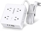 Surge Protector Power Strip - 6 Ft Flat Plug Extension Cord with 8 Widely Outlets and 4 USB Ports(1 USB C), 3 Side Outlet Extender for Home Office, White, ETL Listed 【8 Outlets Power Strip with 4 USB Ports】- The 3-side power strip with 8AC widely outlets and 4 USB charging ports total 4.2A, each USB A port features 5V/2.4A Max output. USB C charging port features 5V/3A MAX. can power up to 12 devices simultaneously.Wide range voltage design, can be used on 120v to 240v circuit. 【Surge Protector Power Strip with 3 Side Design & Wide Space】- 3-side design that makes it easier to make the plugs not covering any outlet, and the 8 AC outlets with 1.78 inches long space in between, larger than standard 1.5-inch socket. Larger spacing makes it easier to use for all kinds of equipment.The compact design saves more space, suitable for the home, office, and college dorm room. 【6 Ft extension cord with Flat Plug and Cable Ties】- 6 Feet Right Angled Flat Plug power cord makes it more flexible ,Reusable Fastening Cable Ties Can tie up the unused cord and make it better organized. he two mounting holes on back allows this power strip to be securely installed in various applications. 【Multi Safety Protection】- RoHS, FCC and ETL Certificates. This power strip has overload protection, short-circuit protection, over current protection, over-voltage protection and overheating protection. The surge protector with overload protection protects your electrical appliances from lighting, surges or spikes. The minimum energy-absorbing capacity of 600 Joules. It will automatically cut power to protect connected devices when voltage surge is overwhelming. 【 Our After Sale Service 】- ETL Certificates. Our friendly and reliable customer service will respond to you within 24 hours. You can purchase with confidence, with our 30-day return and 12-month replacement . Product Description POWRUI 6 Feet Extension Cord Power Strip with 8 Surge Protector Widely Outlets and 3U1C Ports Power Strip with 8AC Outlets & 4USB Charging Ports Power Strip & Surge Protector Specialist Specification: Input Voltage: 100-240VAC; 60HZ Max.Current: 10A Max.Power Rating: 1250W USB Port Output: DC 5V, Total 4.2A Cord Length: 6 Ft POWRUI Power Strip Surge Protector with 6 FT Flat Plug Extension Cord 600 Joules Surge Pretector Power Strip with 8 Outlets and 4 USB charging ports The 3-side design that makes it easier to make the plugs not covering any outlet, and the 8 AC outlets with 1.78 inches long space in between, larger than standard 1.5-inch socket. Larger spacing makes it easier to use for all kinds of equipment. 3USB A charging ports and 1USB C charging Port total 4.2A, each USB A port features 5V/2.4A Max output. USB C charging port features 5V/3A MAX. Can power up to 12 devices simultaneously.Wide range voltage design, can be used on 120v to 240v circuit. 8 Widely Surge Protector Outlets 3 USB A Ports & 1 USB C Port 3-Side Design Power Strip 6FT Heavy Duty power extension cord Multi Safety Protection 3 USB A Ports & 1 USB C Port The USB port can provide charging for most USB devices, Each USB A port features 5V/2.4A Max output. USB C charging port features 5V/3A MAX. 3 Side Outlet Extender With USB Ports The 3-side power strip with 8AC widely outlets and 4 USB charging ports can fit for larger adapters without blocking each other. The compact design saves more space, suitable for the home, office, and college dorm room. 3 USB A Ports & 1 USB C Port 3 USB A Ports & 1 USB C Port total 4.2A, each USB A port features 5V/2.4A Max output. USB C charging port features 5V/3A MAX. Larger spacing Outlet The AC outlets with 1.78 inches long space in between, larger than standard 1.5-inch socket. Larger spacing makes it easier to use for all kinds of equipment. Multi Safety Protection The surge protector with overload protection protects your electrical appliances from lighting, surges or spikes. The minimum energy-absorbing capacity of 600 Joules. It will automatically cut power to protect connected devices when voltage surge is overwhelming. 600 JOULES SURGE PROTECTION The surge protector with overload protection protects your electrical appliances from lighting, surges or spikes. The minimum energy-absorbing capacity of 600 Joules. 45° Flat Plug design The 45° flat plug design makes the device more convenient to use and will not affect the use of other devices while using this product. 1382°F Flame-Retardant Materials Shell 1382 ° F flame retardant material housing can effectively prevent the occurrence of fire, to ensure the safety, tips. For your safety, do not exceed the product's power rating of 1250W when using the device, otherwise it may cause damage to your device! 6 Ft Extension Cord with Cable Tie The thicker Copper Wires for stronger, high conductivity, more efficient power output, low heat & safer. 6 Feet Right Angled Flat Plug power cord makes it more flexible ,Reusable Fastening Cable Ties Can tie up the unused cord and make it better organized. Mounting Hole Mounting Method 1. Measure the distance between the 2 keyhole slots with the same direction on the back of the power strip. 2. Punch 2 holes on the baseboard with the distance you just measured and insert two self-tapping screws. 3. Put the power strip into the screws and then pull it down a little bit. Please ensure that the screws slide into the smaller holes. Item model number AHR-803B Country of Origin China Item Weight 10.6 ounces Size 6 Ft Package Dimensions 5.98 x 5.83 x 1.81 inches DIMENSION_HERE 5.83 inches x 5.98 inches x 1.81 inches. Weight: 10.6 oz Terms of Sale We can cancel the order for any reason and at any time. Make sure you provide a correct address because it will no longer be possible to change it later. If there is any problem, please avoid leaving negative feedback, we ask you to contact us immediately so we can help you promptly. We accept payments only through PayPal. You have 30 days to return at your expense. Shipping & Fees 