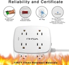 【4+4 Outlets Power Strip with 4 USB Ports】- The 3-side power strip with 8AC widely outlets and 4 USB charging ports total 4.2A, each USB A port features 5V/2.4A Max output. USB C charging port features 5V/3A MAX. can power up to 12 devices simultaneously.Wide range voltage design, can be used on 120v to 240v circuit. 【Surge Protector Power Strip with 3 Side Design & Wide Space】- 3-side design that makes it easier to make the plugs not covering any outlet, and the 8 AC outlets with 1.8 inches long space in between, larger than standard 1.5-inch socket. Larger spacing makes it easier to use for all kinds of equipment.The compact design saves more space, suitable for the home, office, and college dorm room. 【Multi Safety Protection】- RoHS, FCC and ETL Certificates. This power strip has overload protection, short-circuit protection, over current protection, over-voltage protection and overheating protection. The surge protector with overload protection protects your electrical appliances from lighting, surges or spikes. The minimum energy-absorbing capacity of 600 Joules. It will automatically cut power to protect connected devices when voltage surge is overwhelming. 【6 Ft extension cord with Flat Plug and Cable Ties】- 6 Feet Right Angled Flat Plug power cord makes it more flexible ,Reusable Fastening Cable Ties Can tie up the unused cord and make it better organized. he two mounting holes on back allows this power strip to be securely installed in various applications. 【 Our After Sale Service 】- RoHS, FCC and ETL Certificates. Our friendly and reliable customer service will respond to you within 24 hours. You can purchase with confidence, with our 30-day return and 12-month replacement. YISHU 6 Ft Surge Protector Power Strip with 8 Widely Outlets and 4 USB Ports Specifications: Input Voltage: 100-240VAC; 60HZ Max.Current: 10A Max.Power Rating: 1250W USB Port Output: DC 5V, Total 4.2A Cord Length: 6 Ft Surge Protection Rating: 600 Joules YISHU Power Strip Surge Protector with 6 FT Flat Plug Extension Cord Built-in 600 Joules Surge Pretector Power Strip with 8 Outlets and 4 USB charging ports The 3-side design that makes it easier to make the plugs not covering any outlet, and the 8 AC outlets with 1.78 inches long space in between, larger than standard 1.5-inch socket. Larger spacing makes it easier to use for all kinds of equipment. 3USB A charging ports and 1USB C charging Port total 4.2A, each USB A port features 5V/2.4A Max output. USB C charging port features 5V/3A MAX. Can power up to 12 devices simultaneously.Wide range voltage design, can be used on 120v to 240v circuit. 8 AC Outlet Extender 3 USB A & 1 USB C Smart Charging Ports 1.78 inches Wide Space AC Outlet 6 Ft extension cord with Flat Plug and Cable Ties Surge Protection LED Indicator Item Dimensions: 4.33*4.05*1.65 inches 3 Side Outlet Extender With USB Ports The 3-side power strip with 8AC widely outlets and 4 USB charging ports can fit for larger adapters without blocking each other. The compact design saves more space, suitable for the home, office, and college dorm room. 3 USB-A Ports and 1 USB-C Port 3 USB A Ports & 1 USB C Port total 4.2A, each USB A port features 5V/2.4A Max output. USB C charging port features 5V/3A MAX. Meets the charging needs of most cell phones. NOTE: The UCB-C port doesn't support any other devices which need 14~22V charging voltage. Larger spacing Outlet The AC outlets with 1.78 inches long space in between, larger than standard 1.5-inch socket. Larger spacing makes it easier to use for all kinds of equipment. 45° plug design is more convenient to use The 45° plug design makes it possible not to interfere with your simultaneous use of other devices, which brings the best experience. Multi Safety Protection The surge protector with overload protection protects your electrical appliances from lighting, surges or spikes. The minimum energy-absorbing capacity of 600 Joules. It will automatically cut power to protect connected devices when voltage surge is overwhelming. 1382°F Flame-Retardant Materials Shell 1382 ° F flame retardant material housing can effectively prevent the occurrence of fire, to ensure the safety, tips. For your safety, do not exceed the product's power rating of 1250W when using the device, otherwise it may cause damage to your device! 6 Ft Extension Cord with Cable Tie 6 Feet Right Angled Flat Plug power cord makes it more flexible ,Reusable Fastening Cable Ties Can tie up the unused cord and make it better organized. Mounting Hole Mounting Method 1. Measure the distance between the 2 keyhole slots with the same direction on the back of the power strip. 2. Punch 2 holes on the baseboard with the distance you just measured and insert two self-tapping screws. 3. Put the power strip into the screws and then pull it down a little bit. Please ensure that the screws slide into the smaller holes.